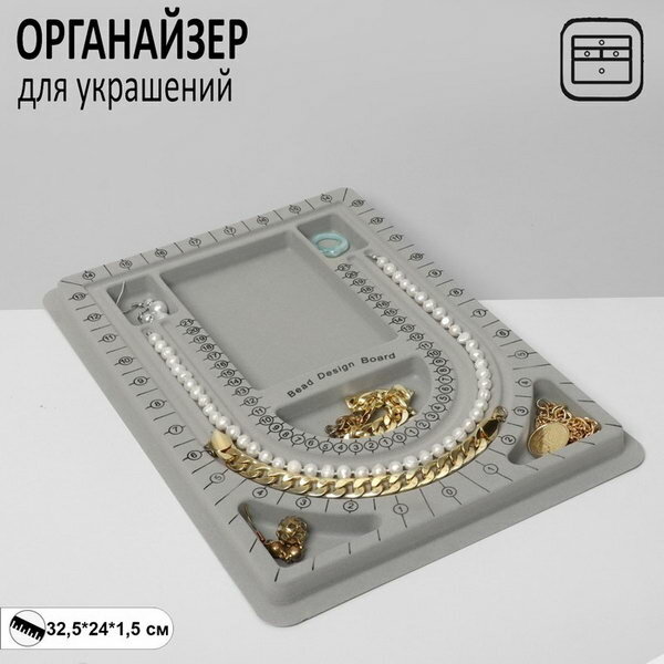 Органайзер универсальный для украшений «Трафарет», 24×32,5×1,5 см, цвет серый