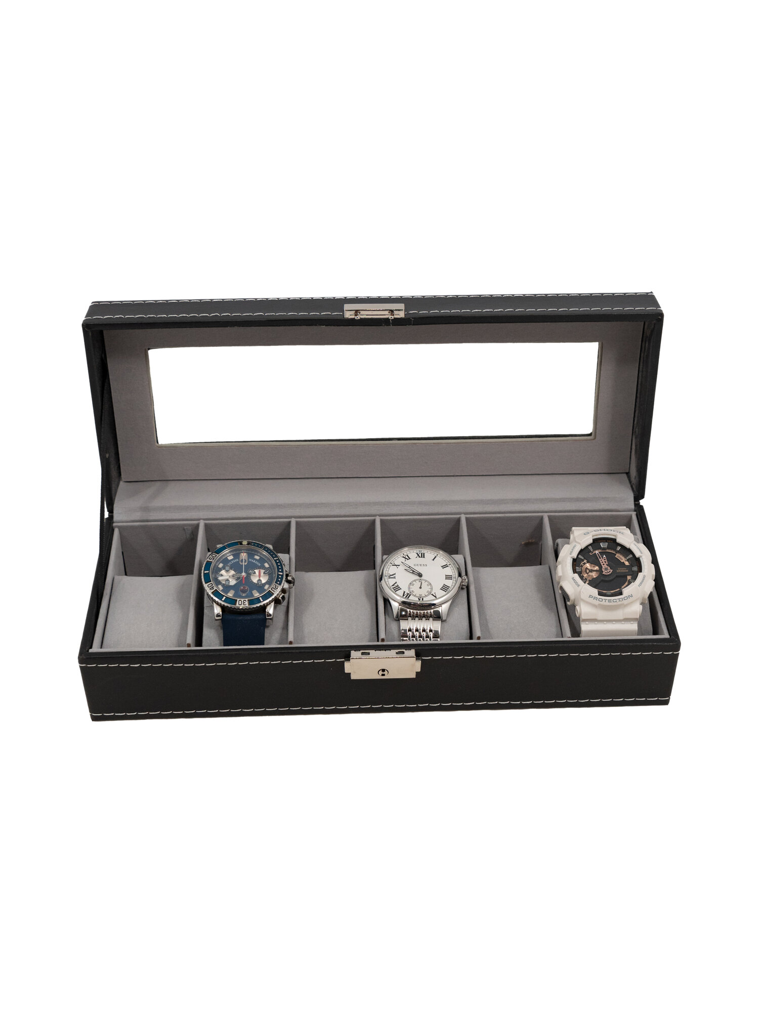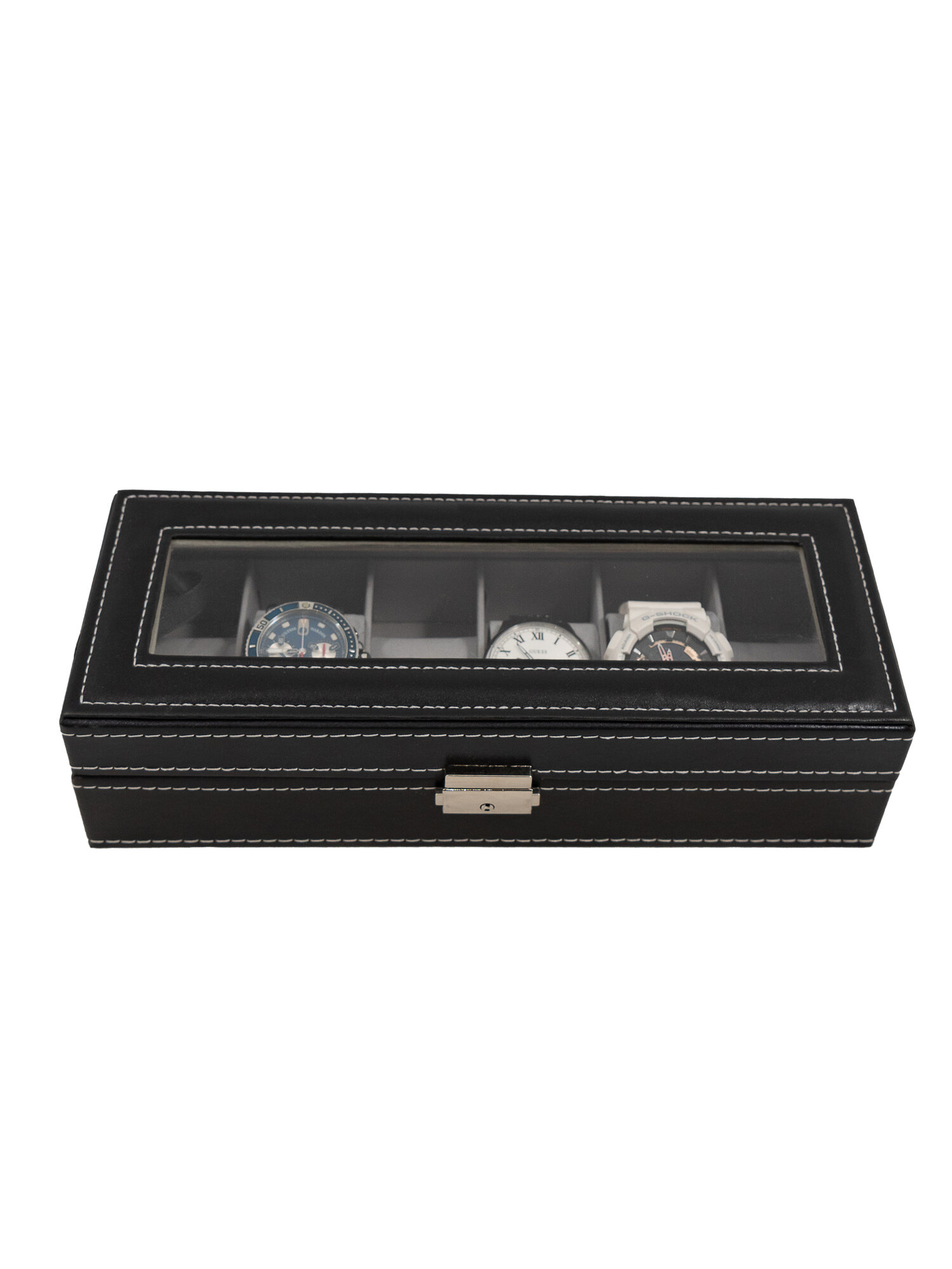 Шкатулка большая двухуровневая для хранения 10 часов, 5 очков и украшений CloxBox W119 Черная