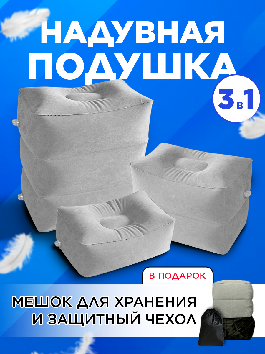Надувная подушка для ног регулируемая по высоте (3 уровня, серая)