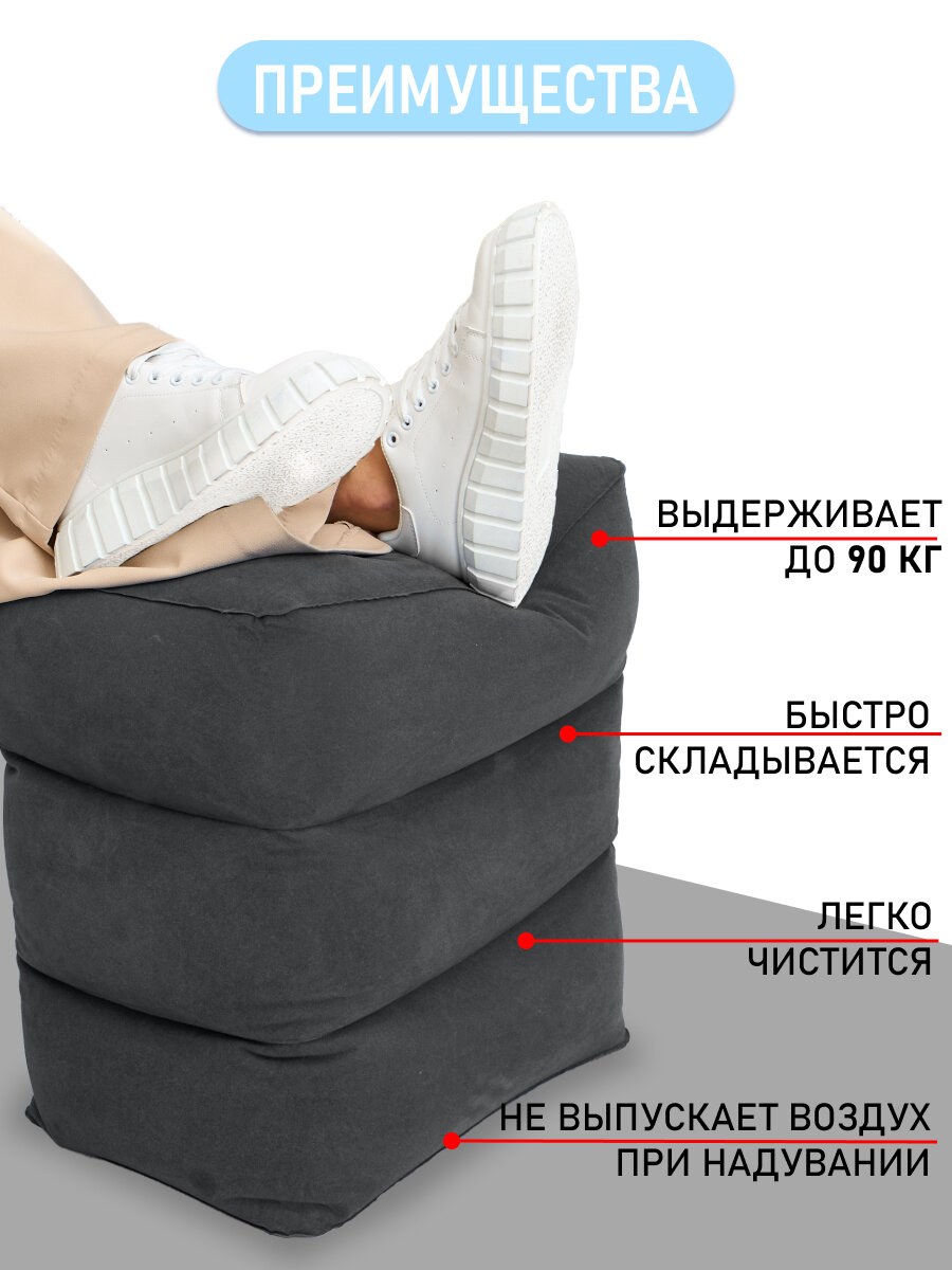 Подушка для путешествий CURSUS надувная для ног в самолет, для детей и взрослых, темно - серая