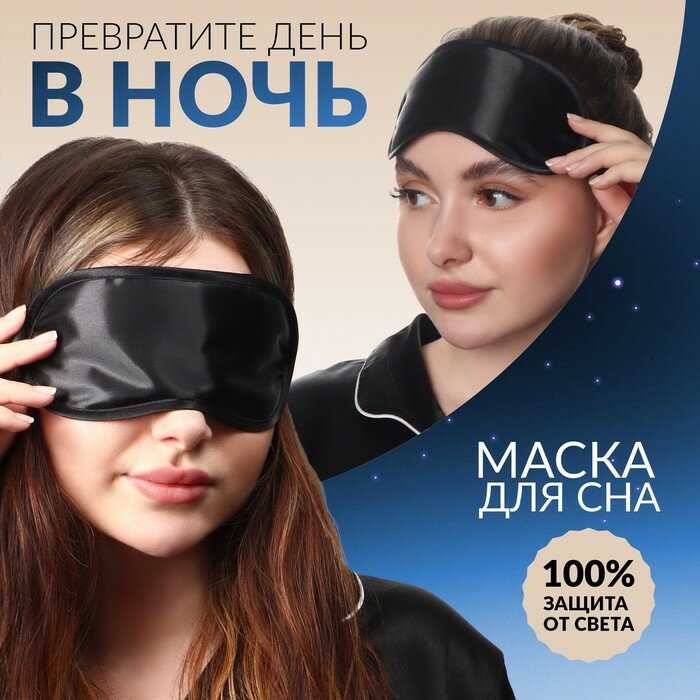 Маска для сна, 19 × 8,5 см, резинка одинарная, цвет чёрный