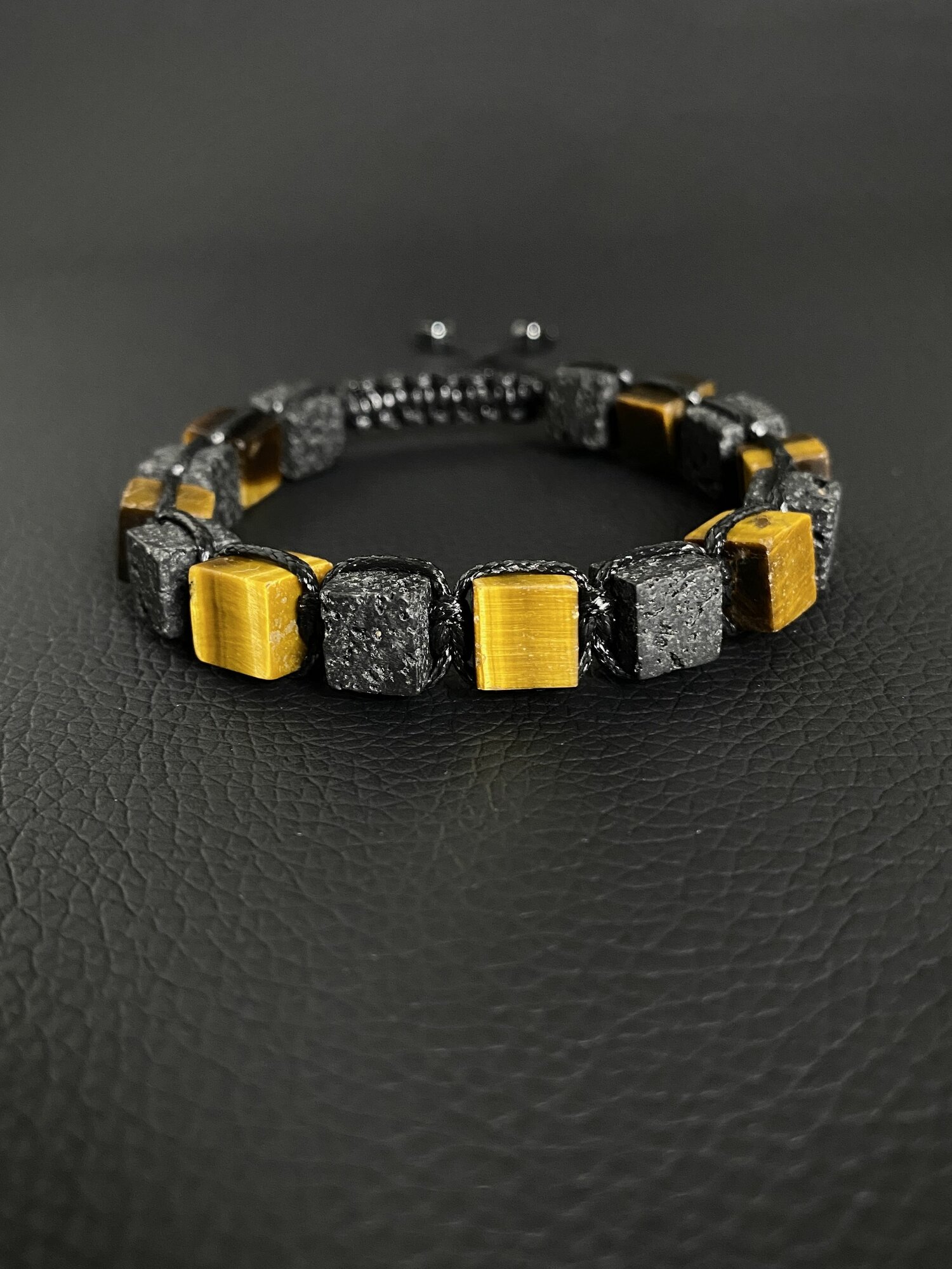 Браслет куб квадрат из натуральных камней мужской яшма и лава / плетеный шамбала