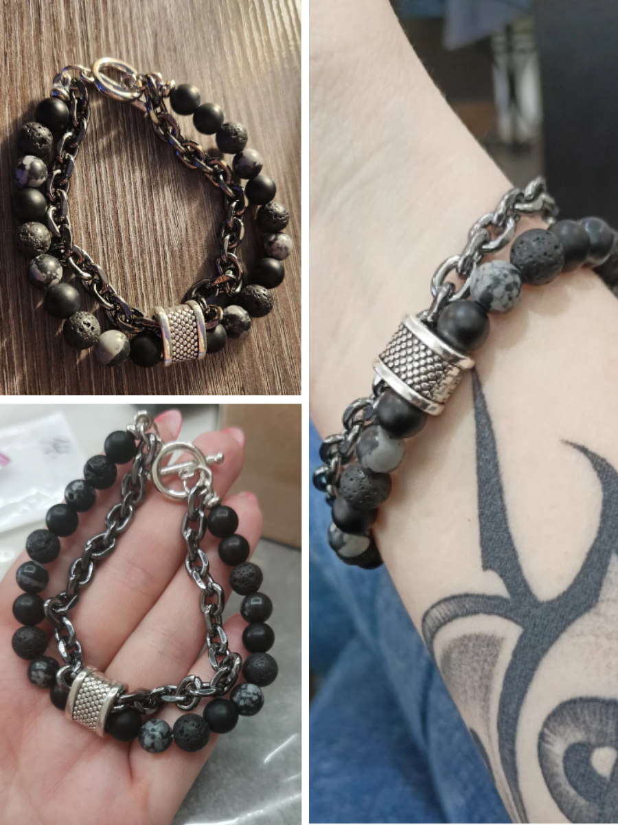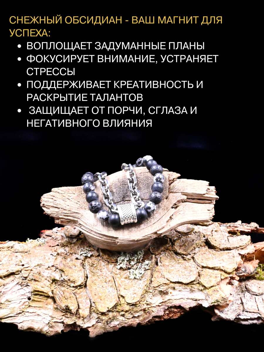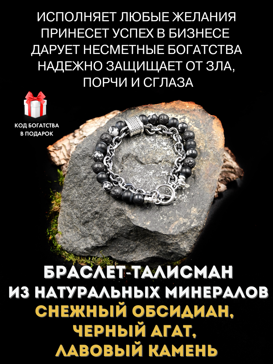 Браслет-талисман с агатом, обсидианом и лавовым камнем