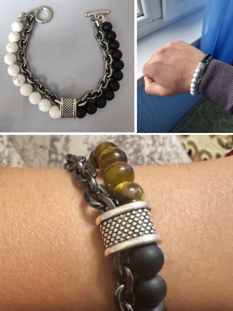Браслет-талисман с черным агатом и кахолонгом