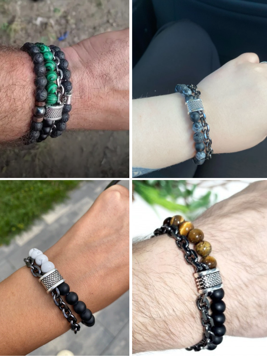 Браслет-талисман с агатом, обсидианом и лавовым камнем