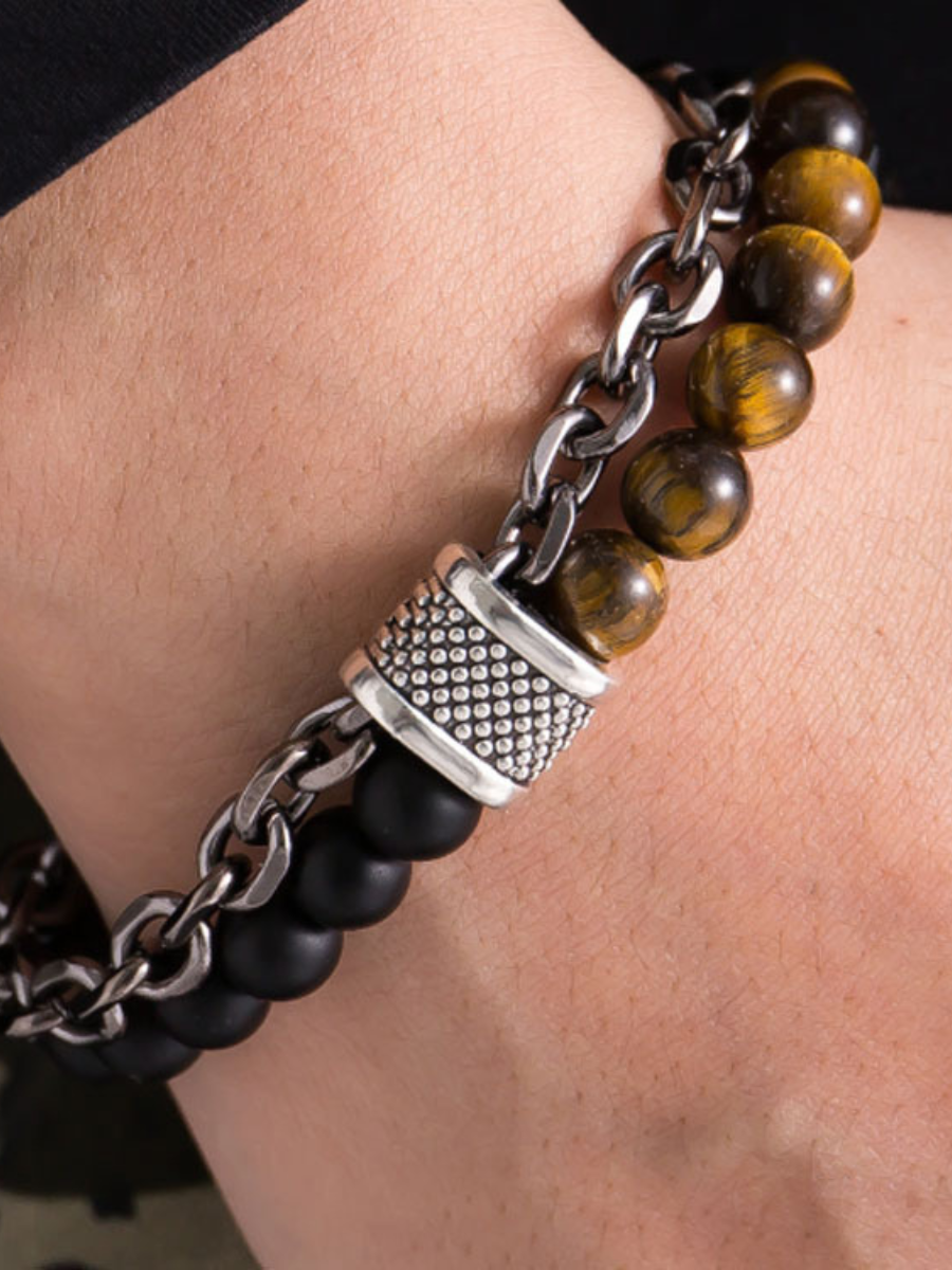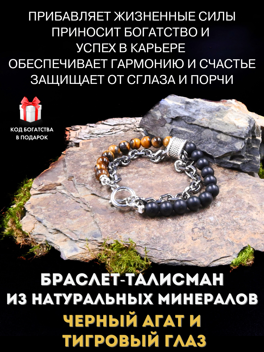 Браслет-талисман с черным агатом и тигровым глазом