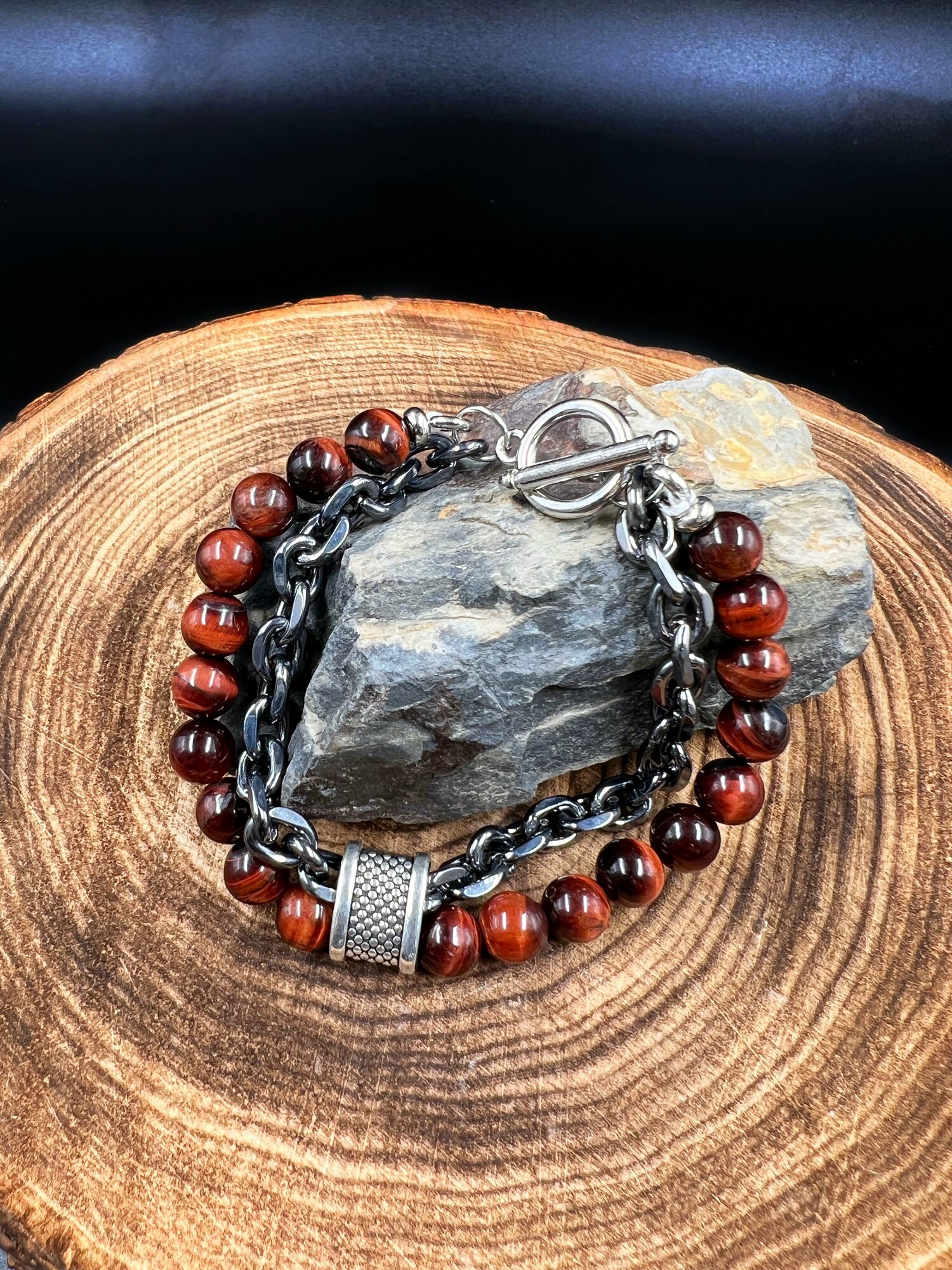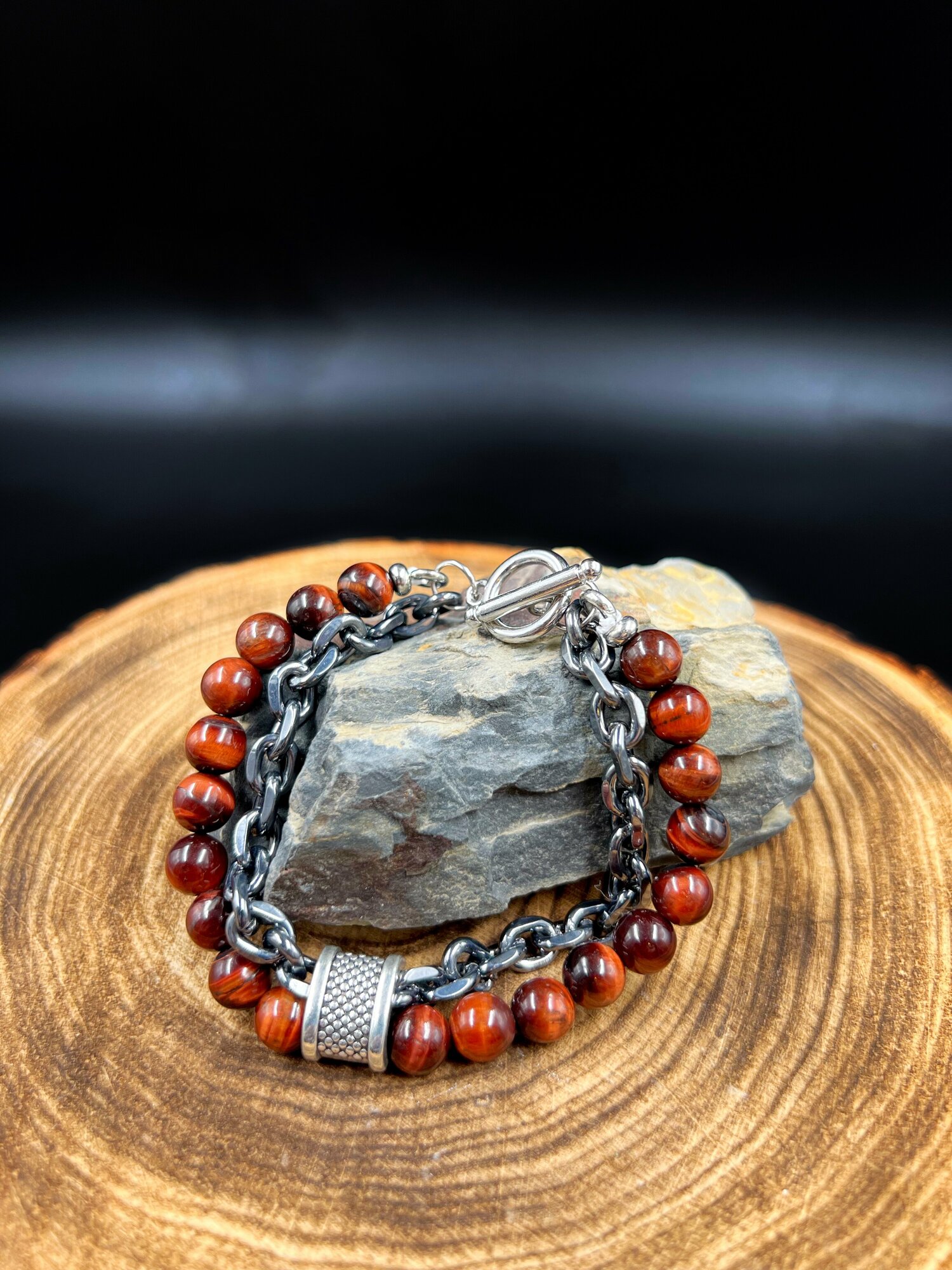 Браслет-талисман с черным агатом и тигровым глазом