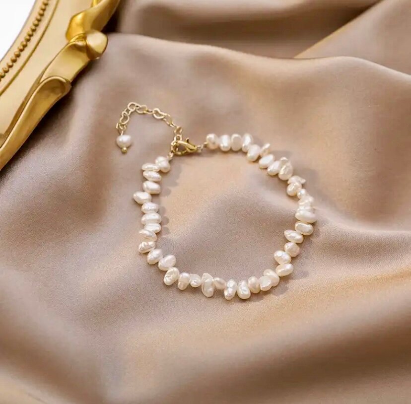 Браслет позолоченный из натурального пресноводного барочного жемчуга