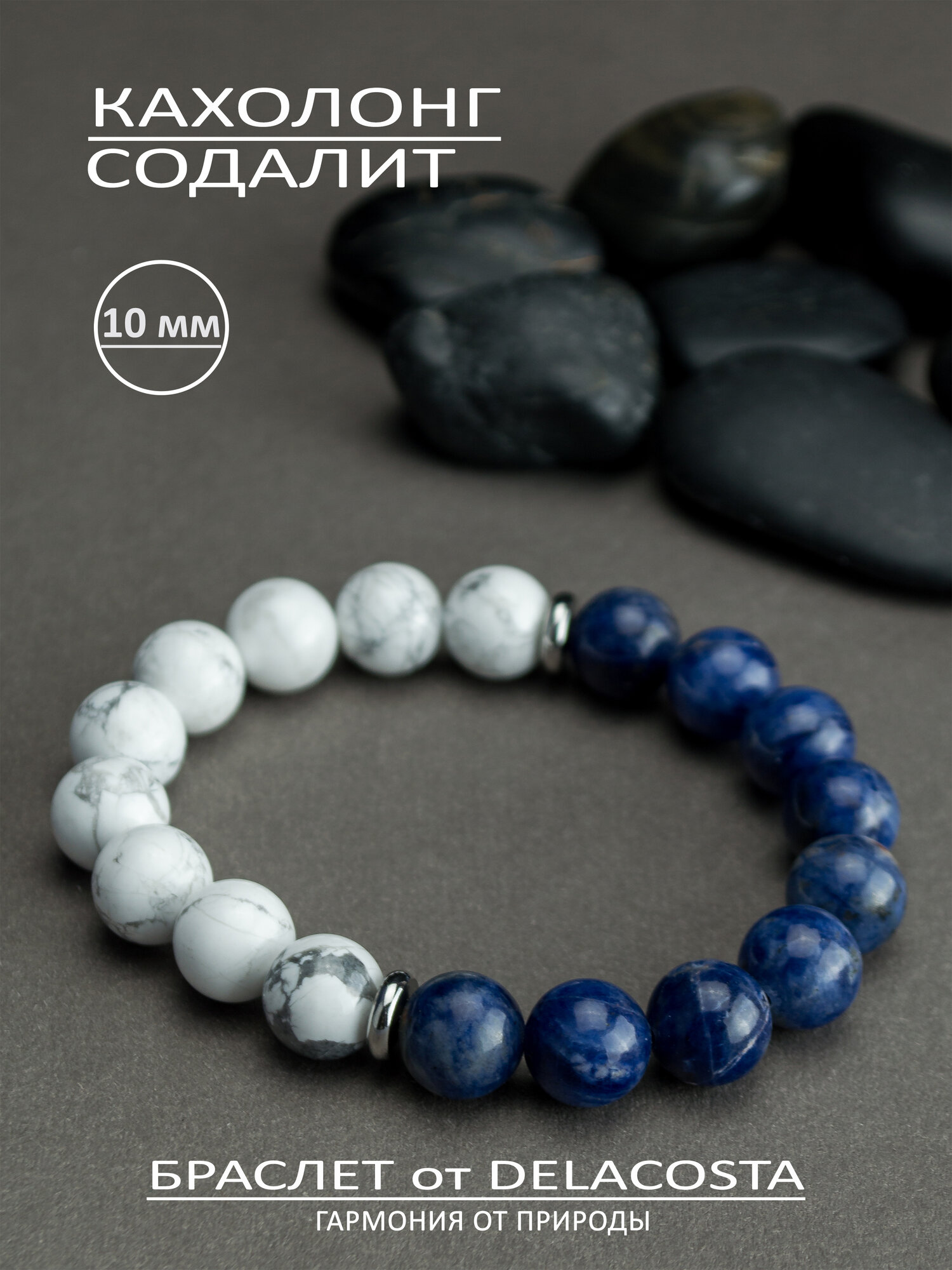 Купить Браслет DELACOSTA, кахолонг, содалит, 1 шт., размер 22 см, синий/белый/голубой