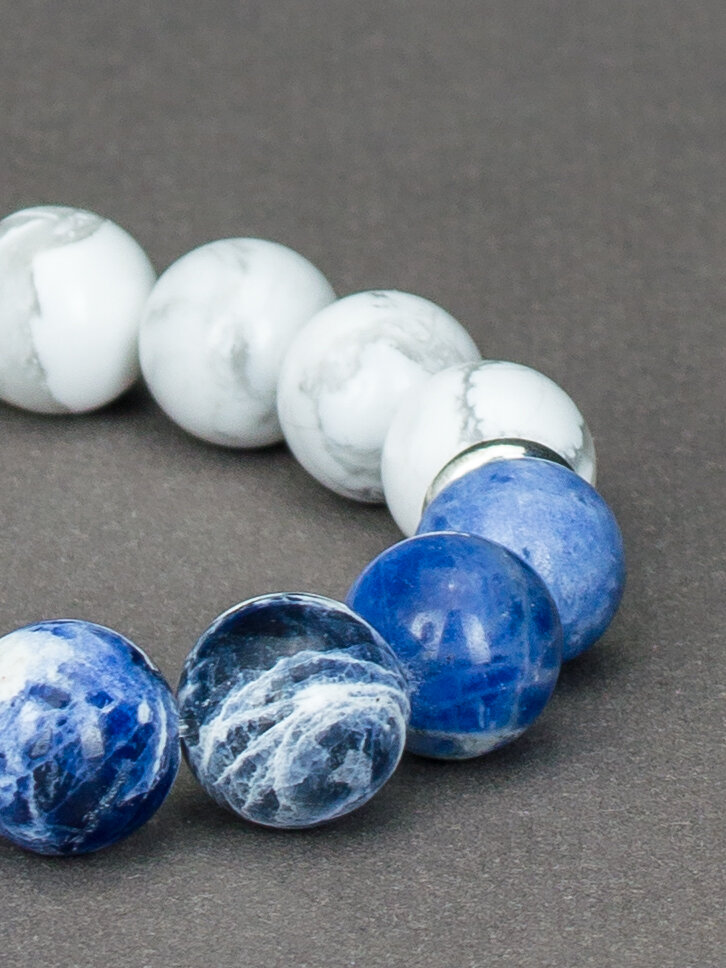 Браслет из натурального камня Содалит и Кахолонг 10 мм 17-размер
