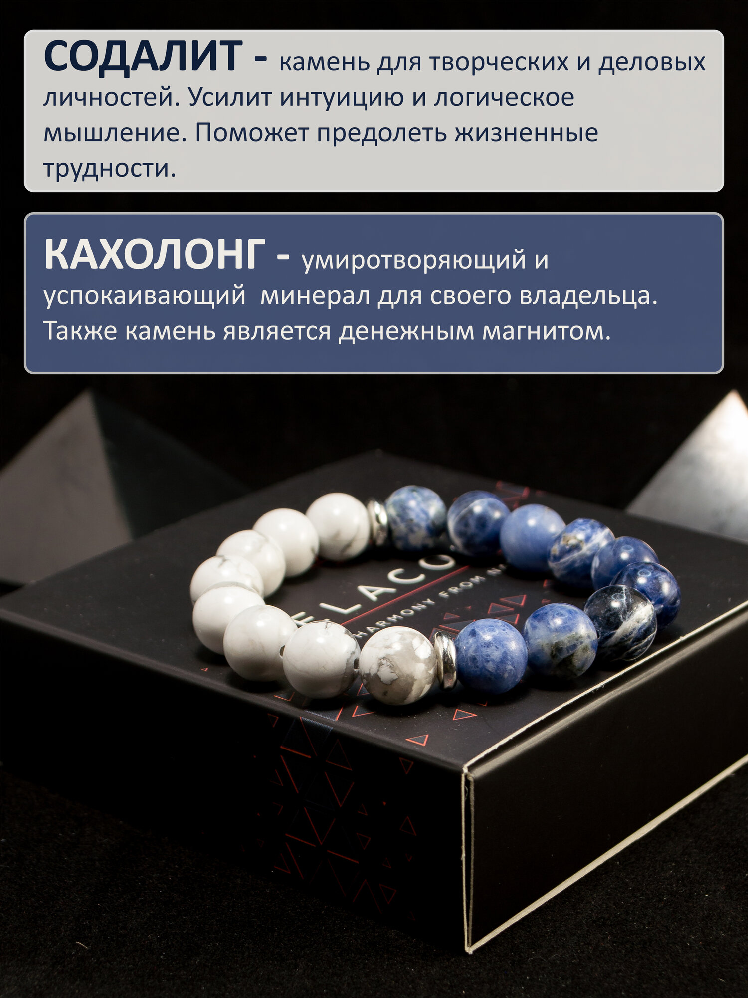 СохранитьБраслет DELACOSTA, кахолонг, содалит, 1 шт., размер 17 см, размер S, синий/белый/голубой интересное: