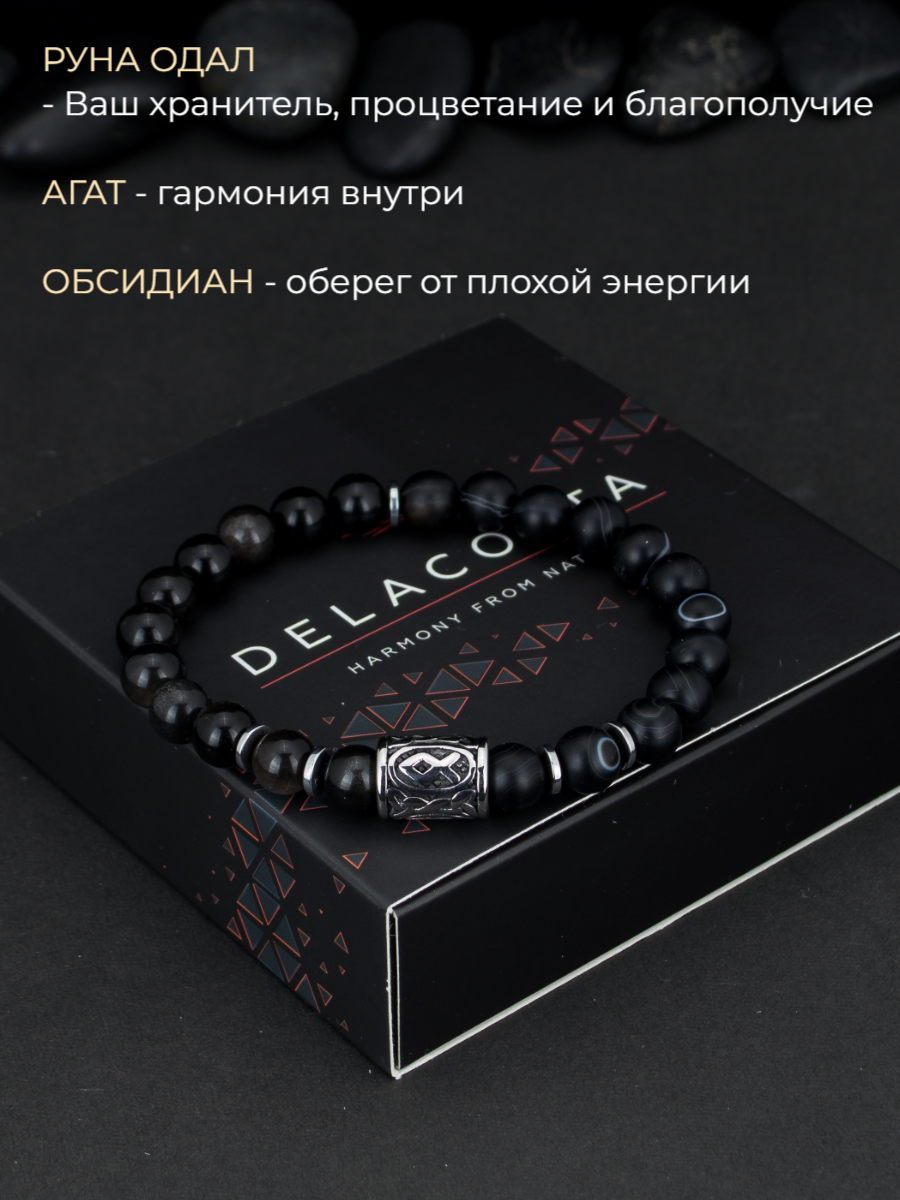 СохранитьБраслет DELACOSTA, агат, обсидиан, 1 шт., размер 21 см, черный интересное: