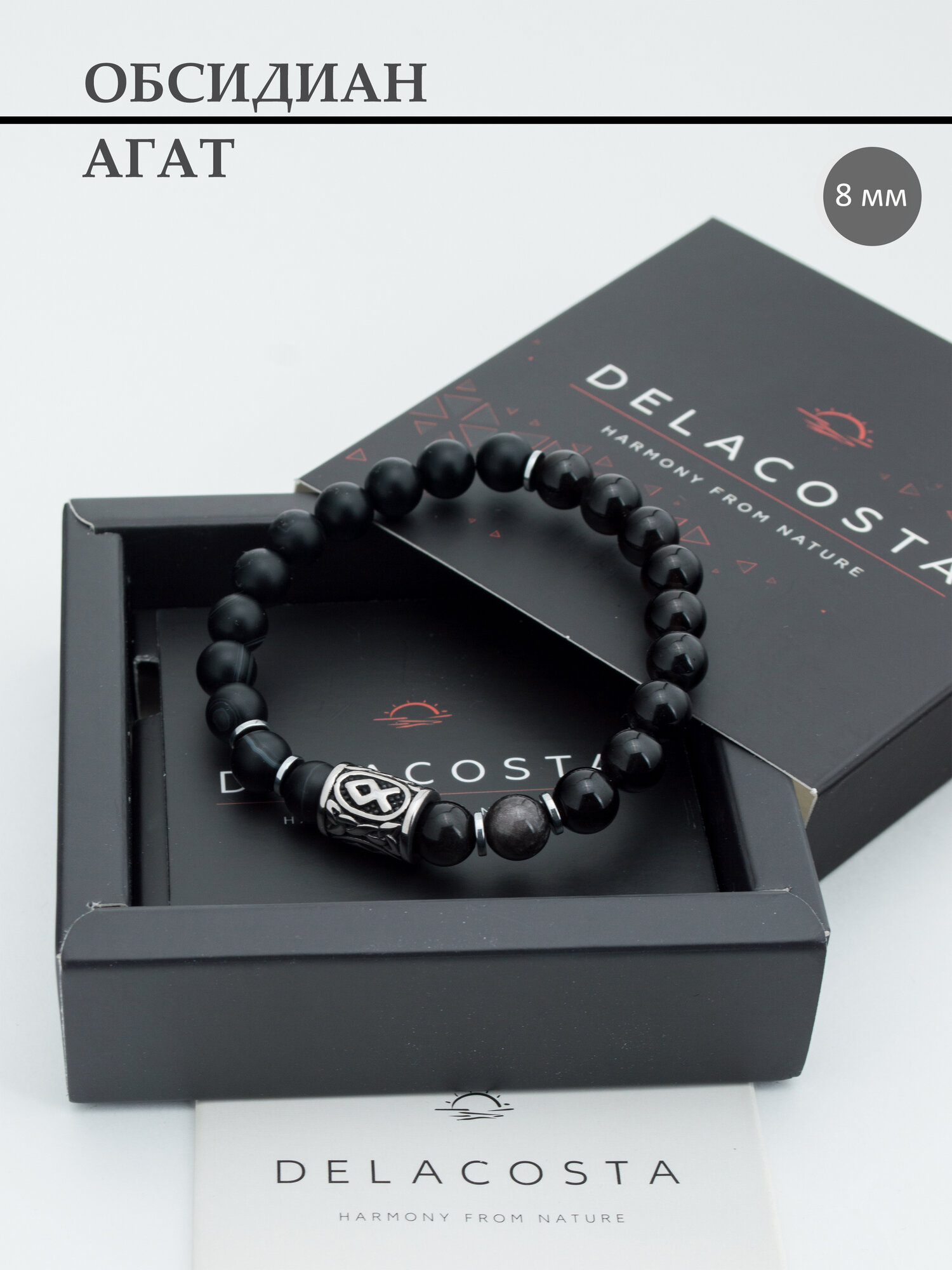 Купить Браслет DELACOSTA, агат, обсидиан, 1 шт., размер 21 см, черный