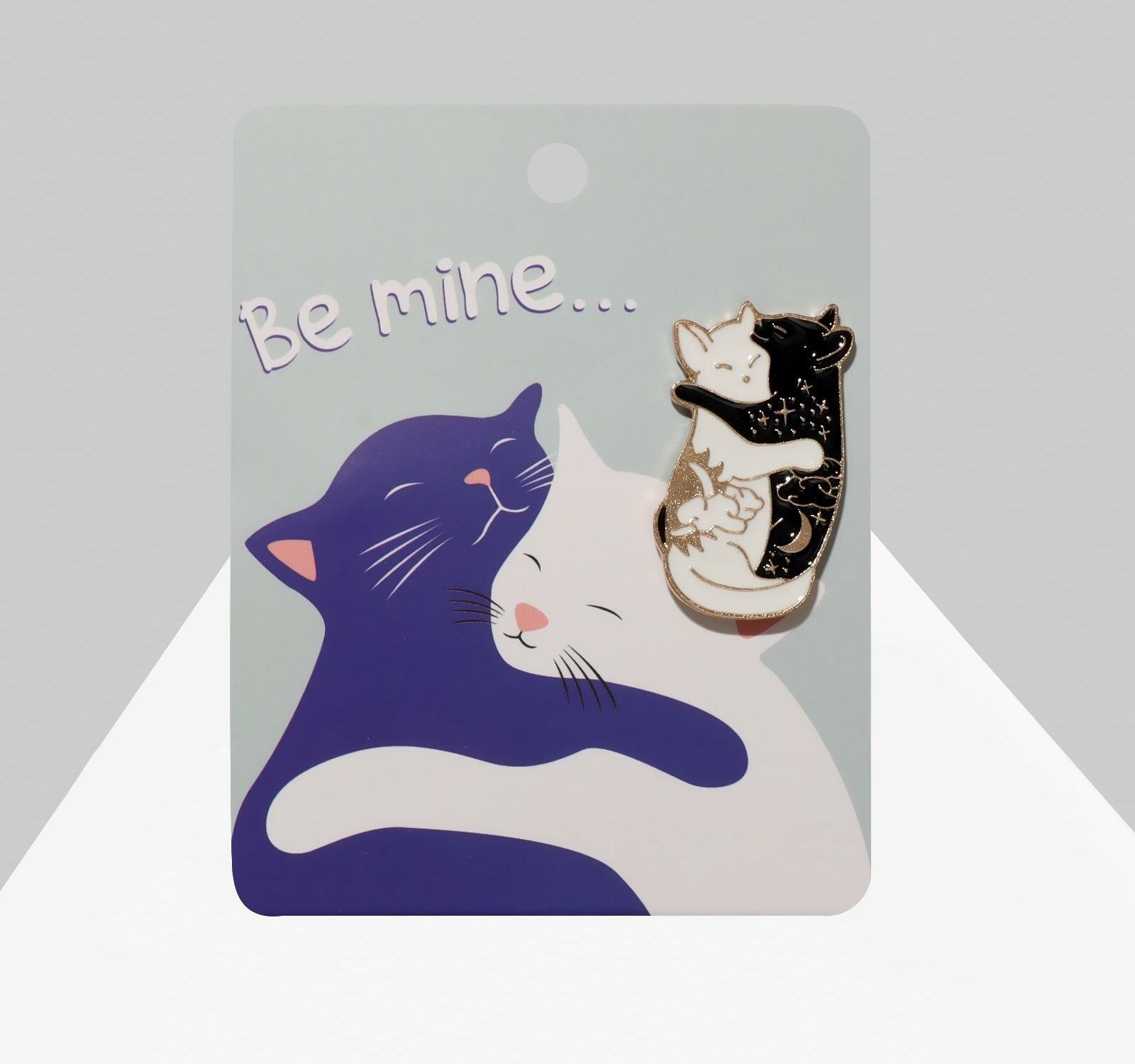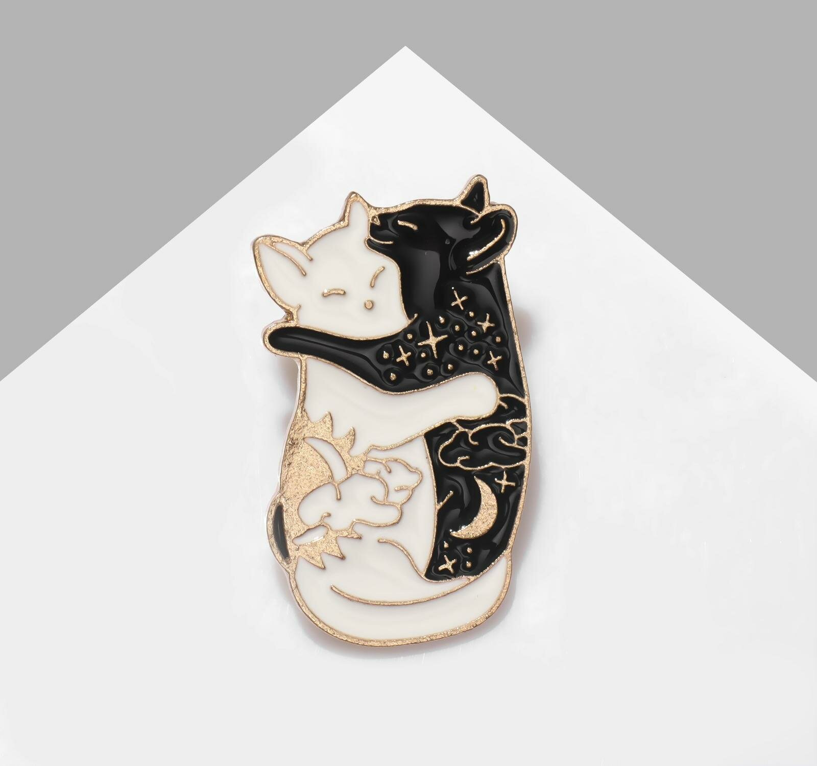 Значок "Коты" инь-ян, цвет чёрно-белый в золоте