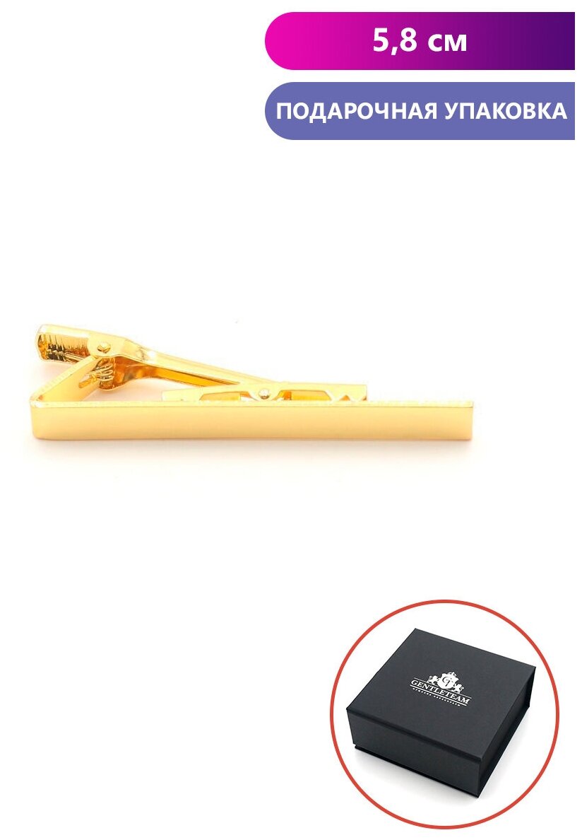 Зажим для галстука GENTLETEAM, золото, 58 мм