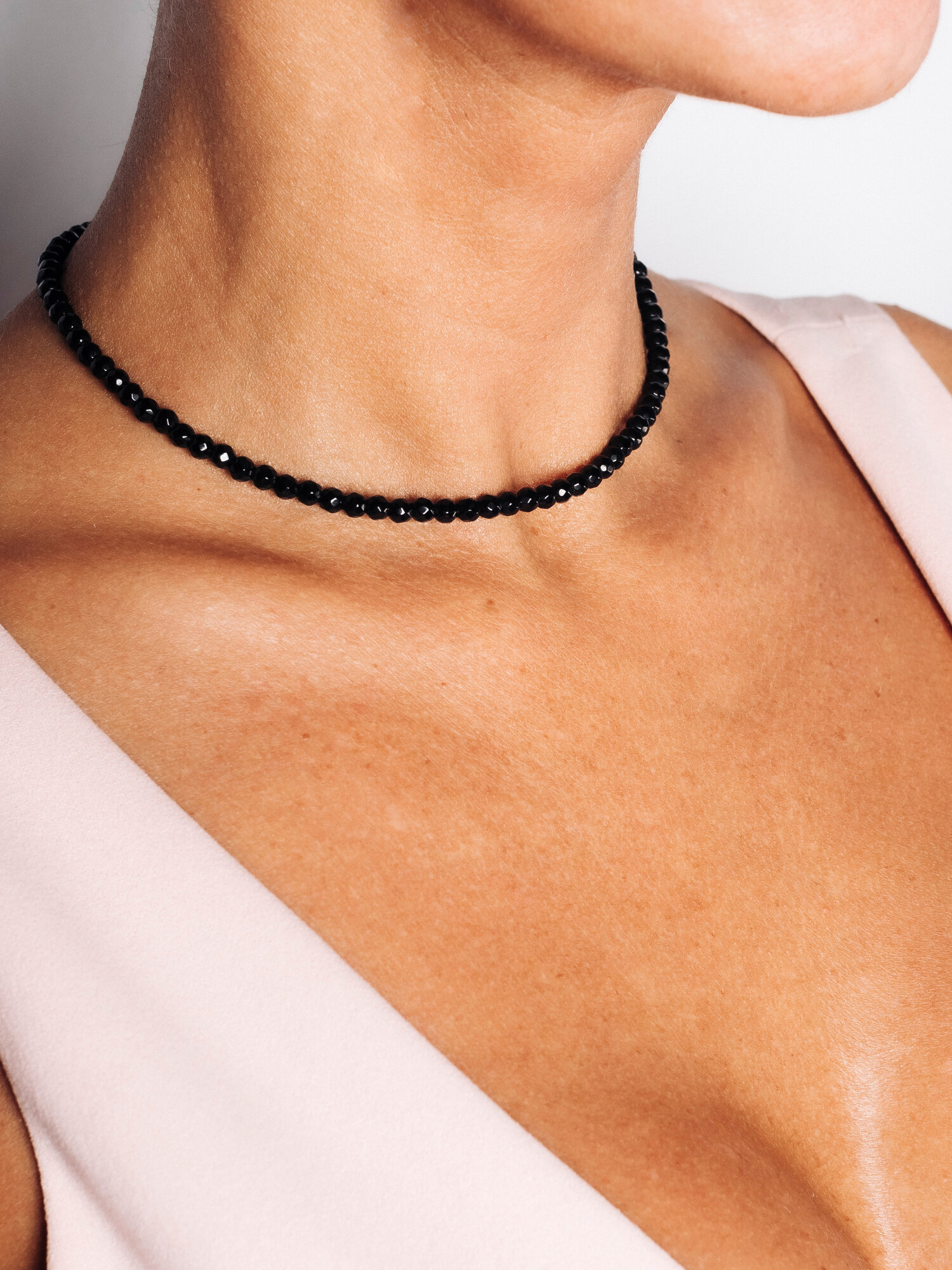 Чокер из натуральных камней в огранке Facets черный агат, ожерелье ручной работы