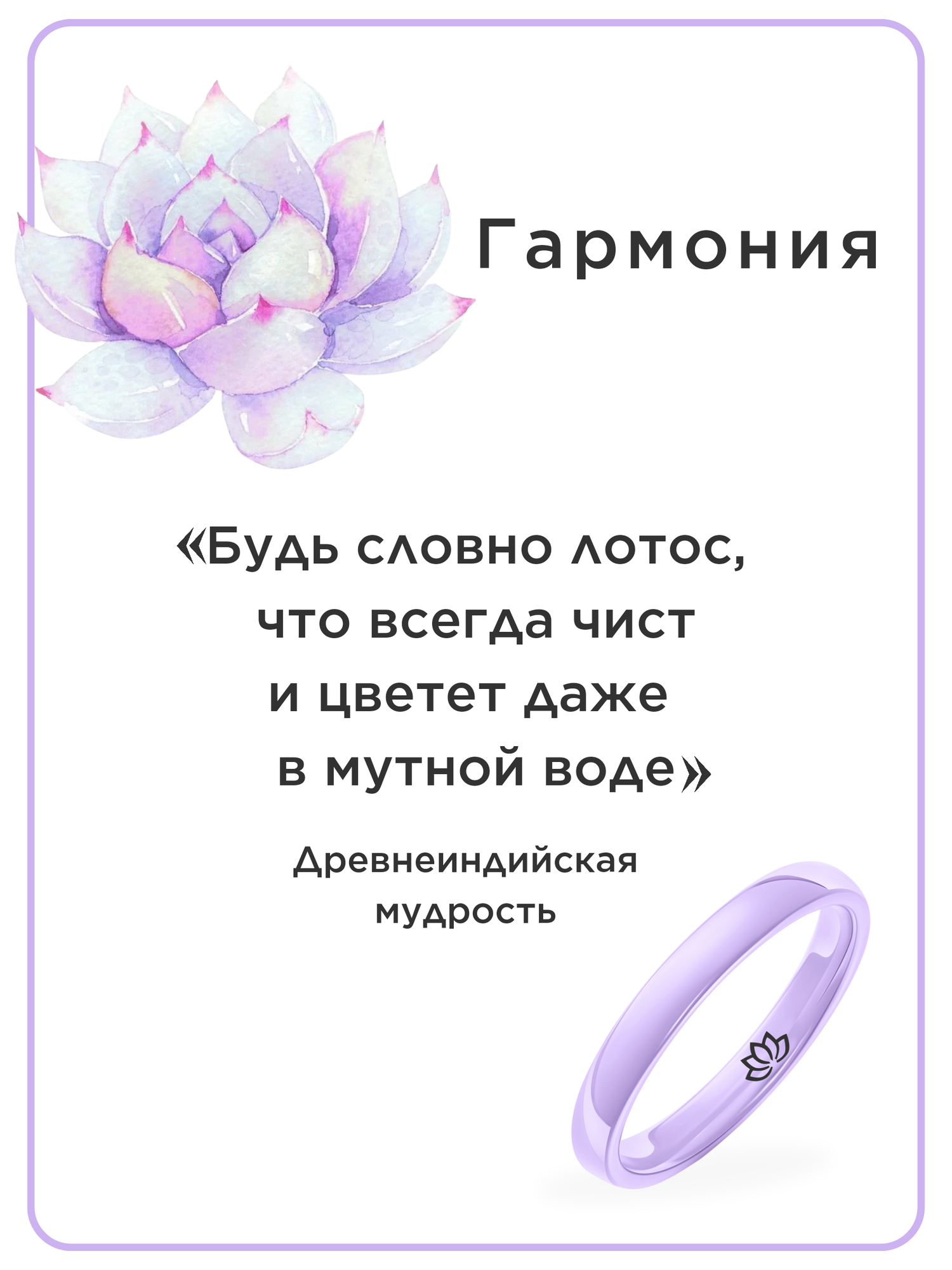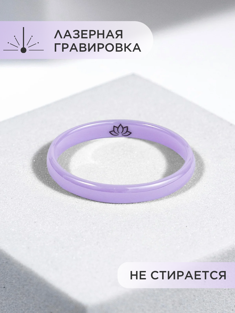 Керамическое кольцо с гравировкой фиолетовое "Лотос" 18 размер