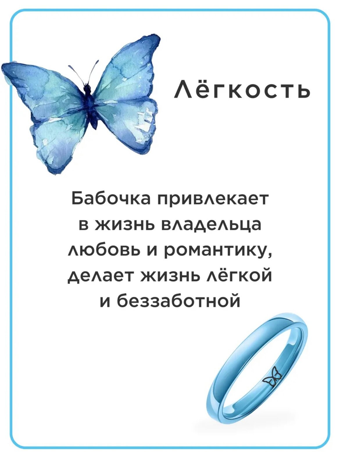 Керамическое кольцо с гравировкой голубое "Бабочка" 16 размер
