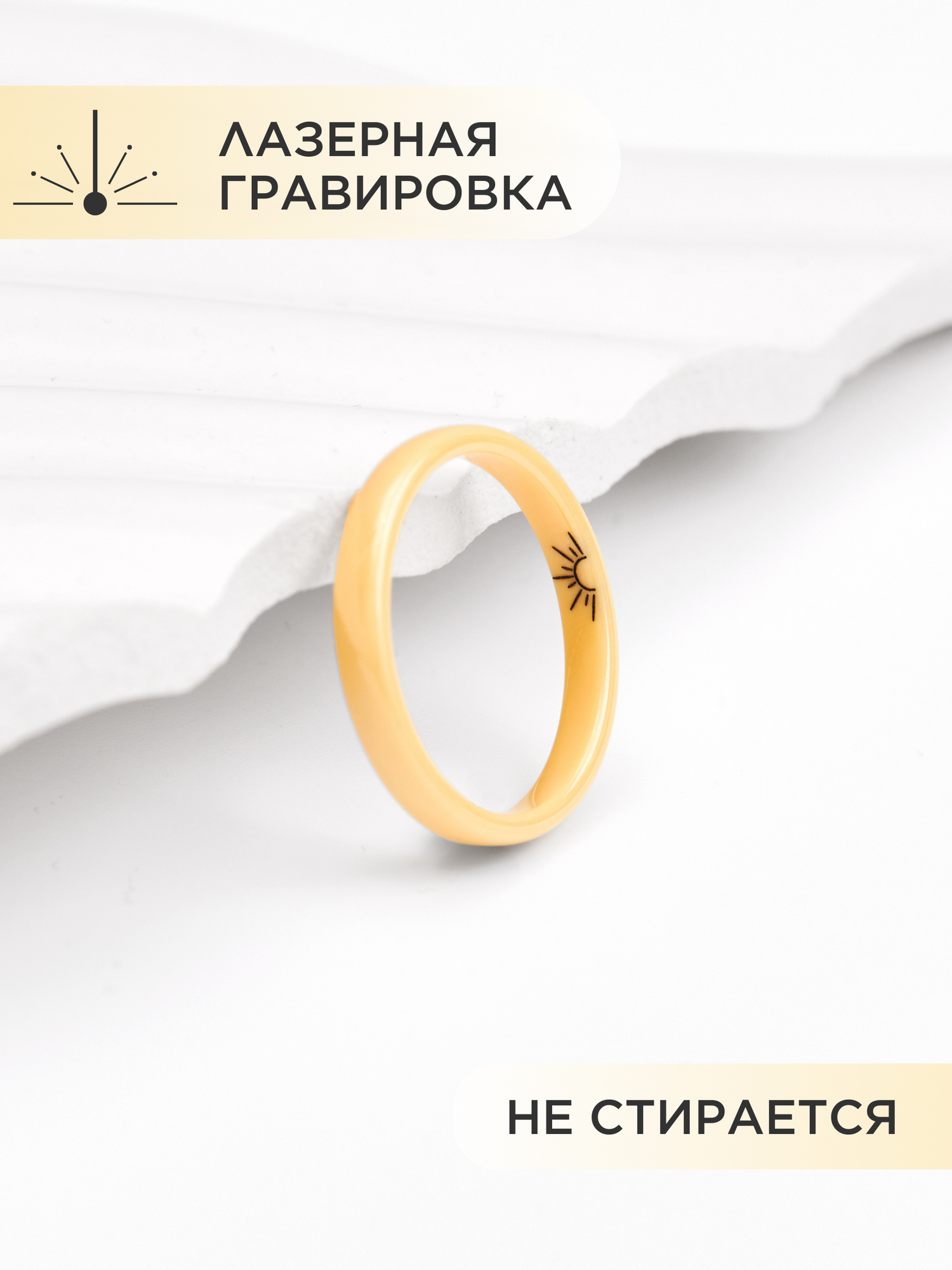 Желтое керамическое кольцо с гравировкой 17,5 размер