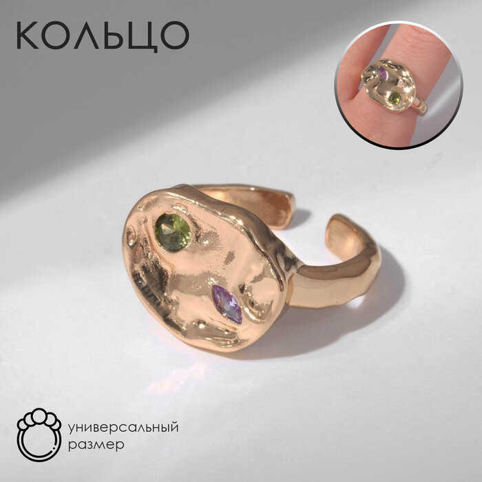 Кольцо "Мятые линии", цвет фиолетово-розовый в золоте, безразмерное 9679552