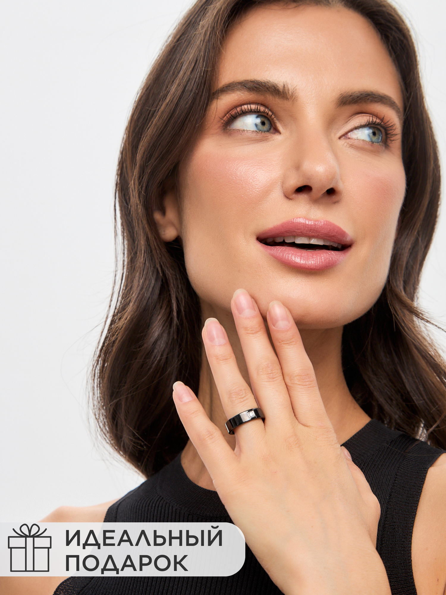 NOIMA Кольцо керамическое с фианитом черное гладкое 5мм 19.5 размер