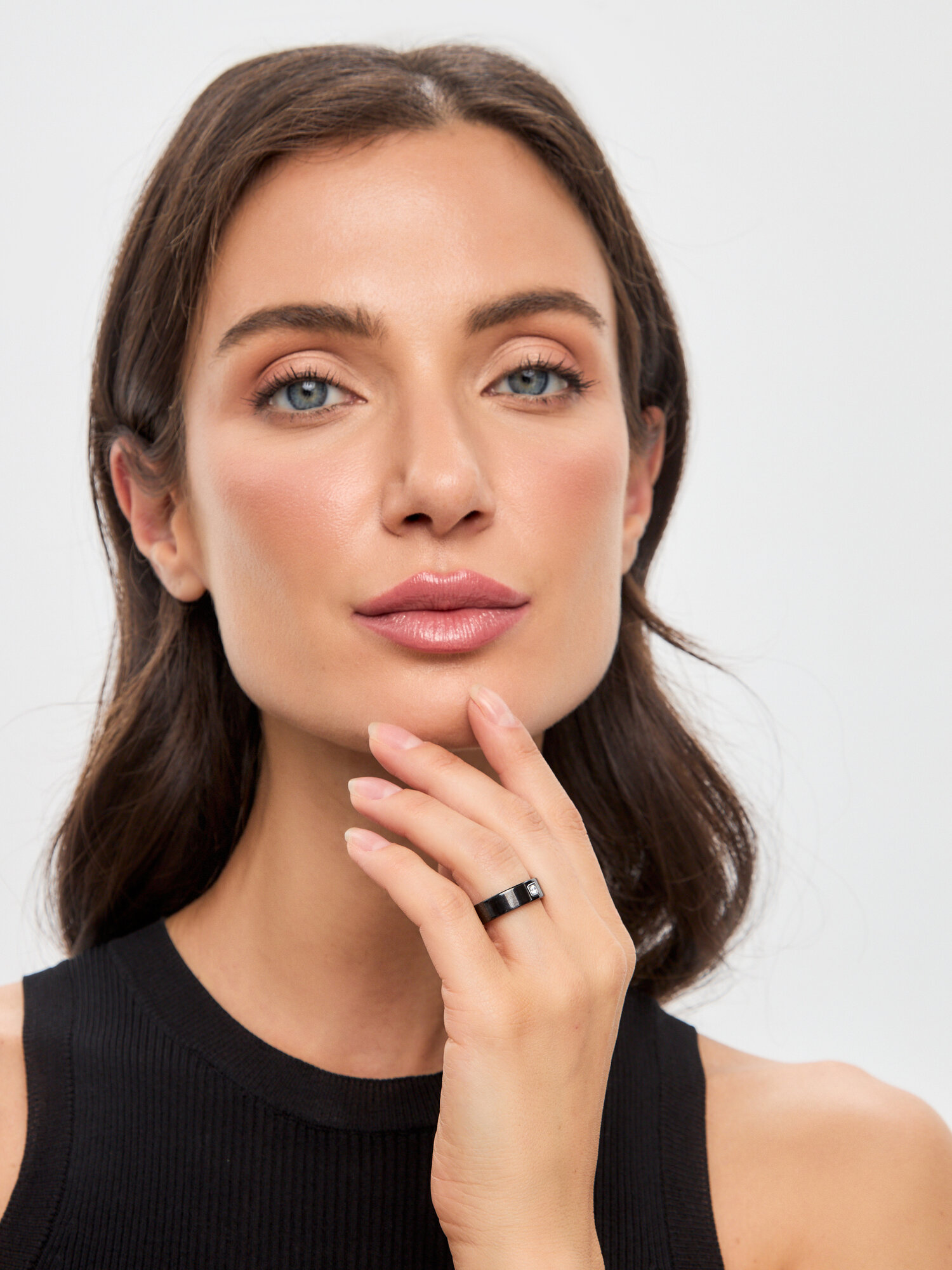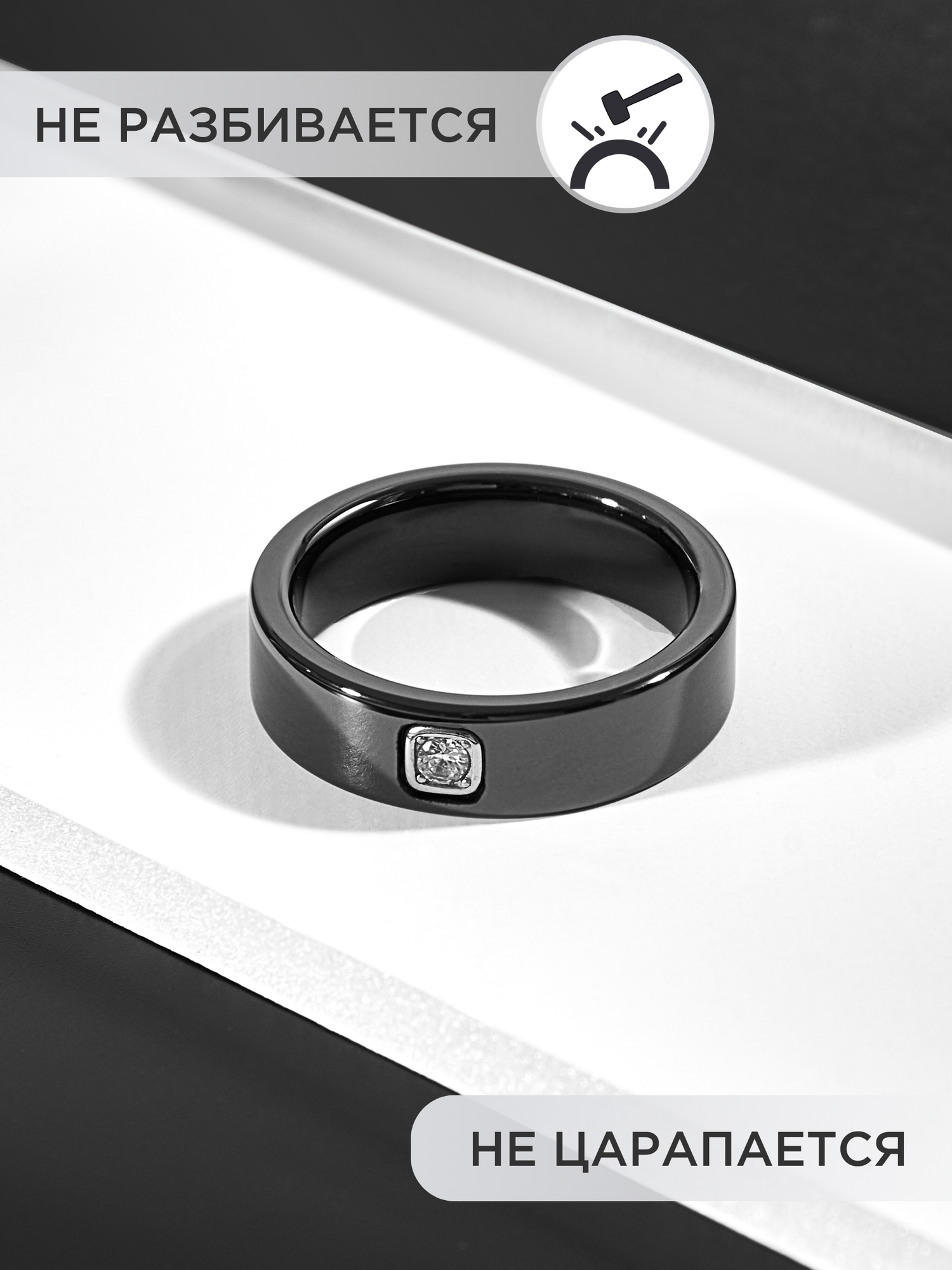 NOIMA Кольцо керамическое с фианитом черное гладкое 5мм 19.5 размер