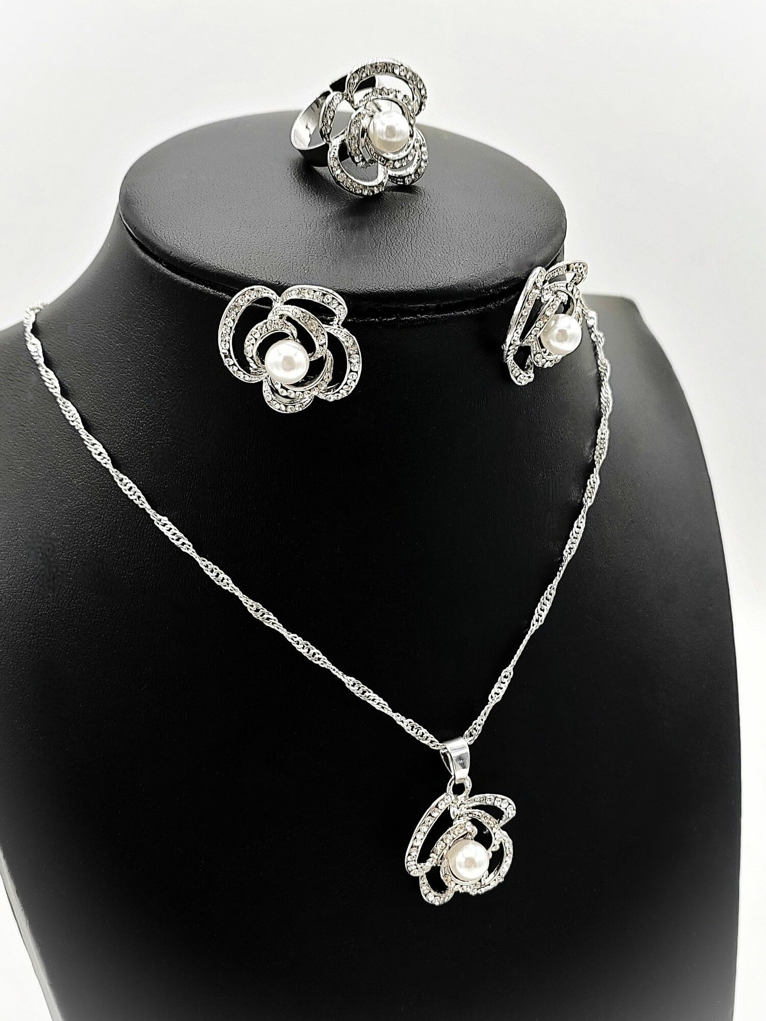 комплект колье, серьги, кольцо бижутерия жемчуг