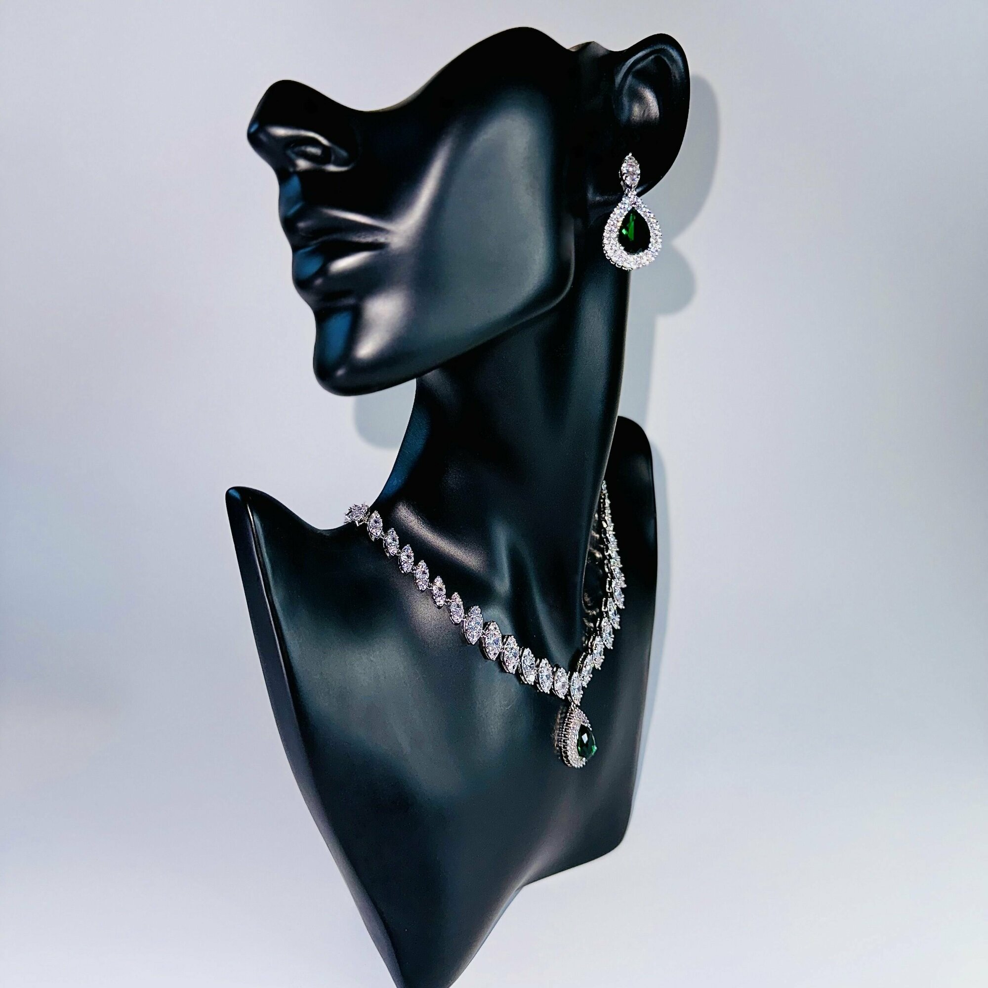 Комплект "Каталина" с зелёными кристаллами. Украшения на свадьбу, выпускной, юбилей.