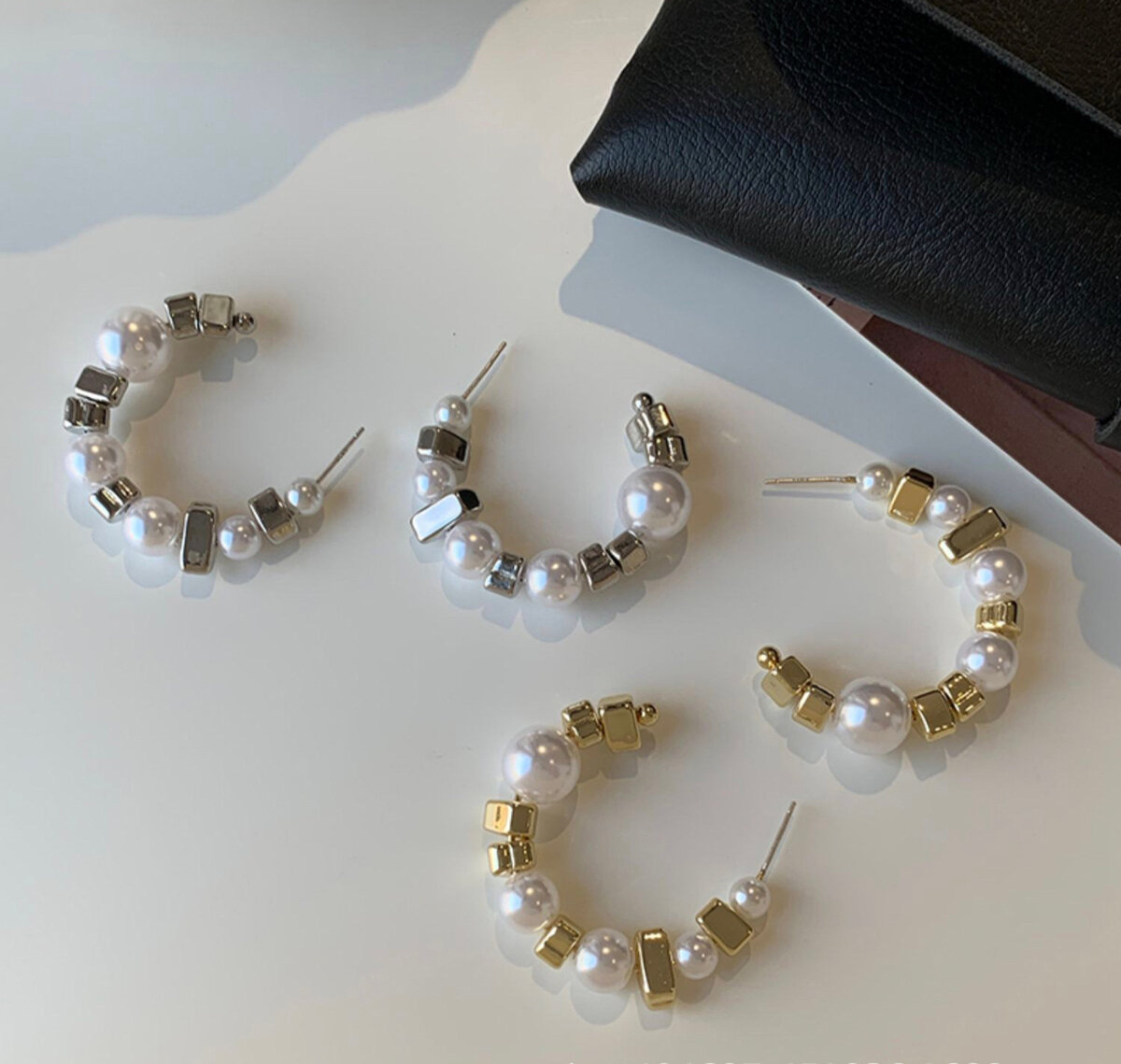 Серьги каффы, с подвесками Стайл Групп, жемчуг имитация, размер 30 мм, серебро