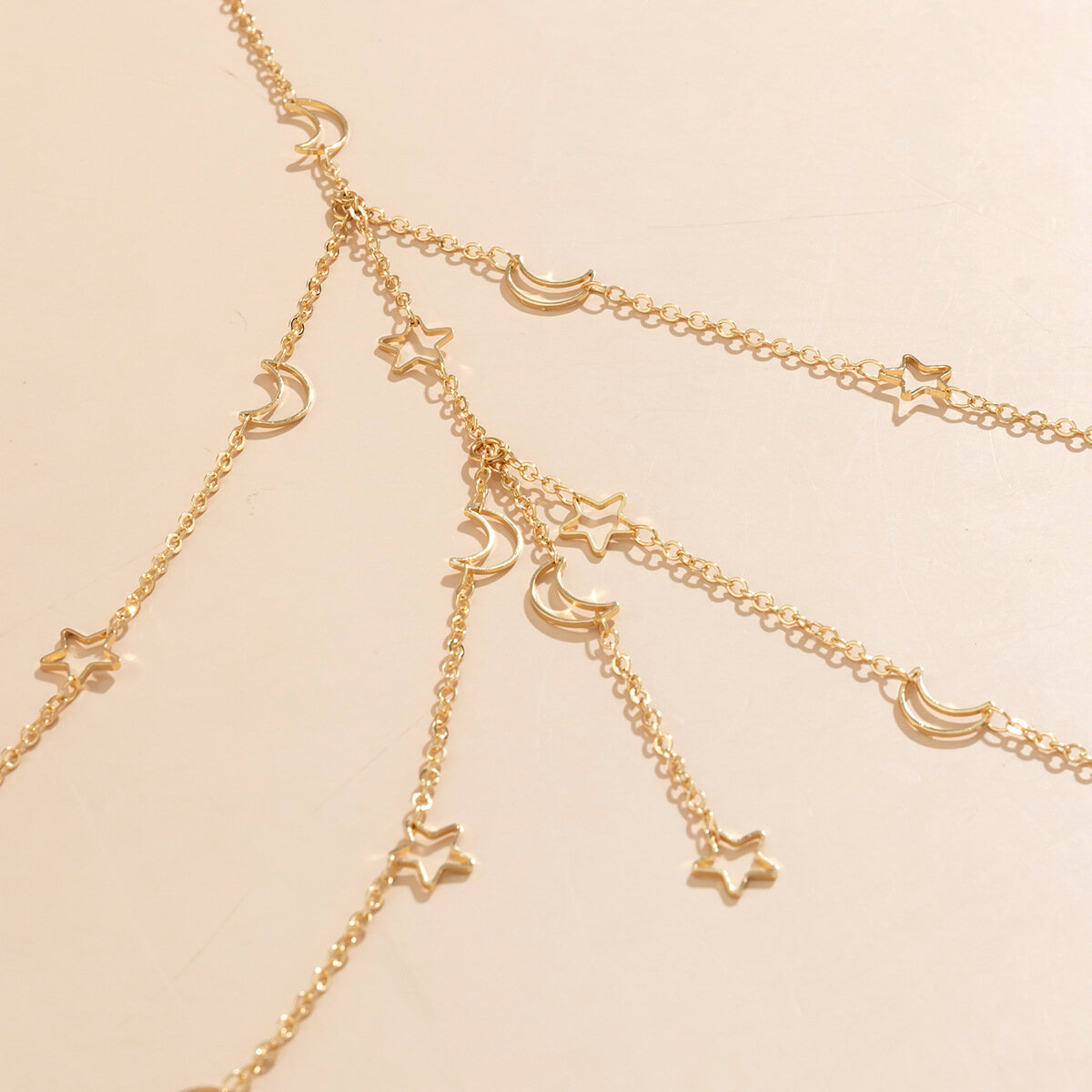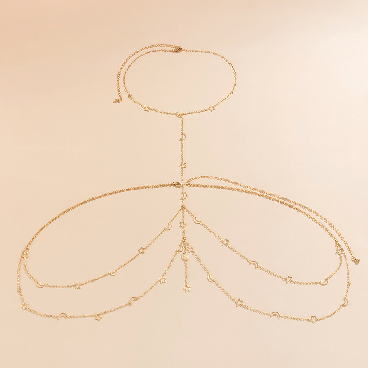 Цепочка на тело 1036 бодичейн украшение на тело купальник платье с подвесками-звездами, золотистая