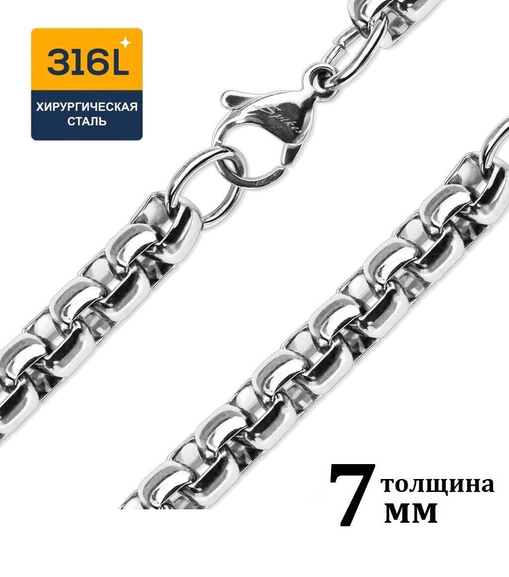 Цепочка на шею из ювелирной стали, плетение лобстер / Толщина 7 мм, длина 60 см
