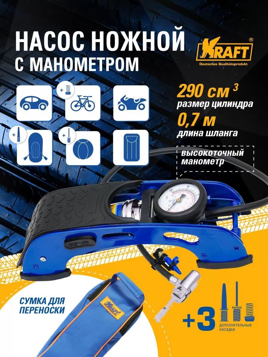 Насос Ножной Однопоршневой С Манометром В Сумке Kraft Kraft арт. KT810001