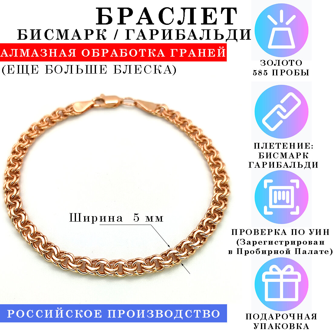 | Комплектация | Браслет из Золота 585 пробы, Бирка, Пломба, Подарочная упаковка |
