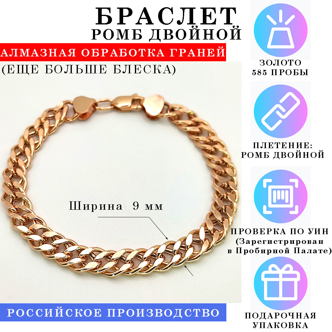 | Комплектация | Браслет из Золота 585 пробы, Бирка, Пломба, Подарочная упаковка |