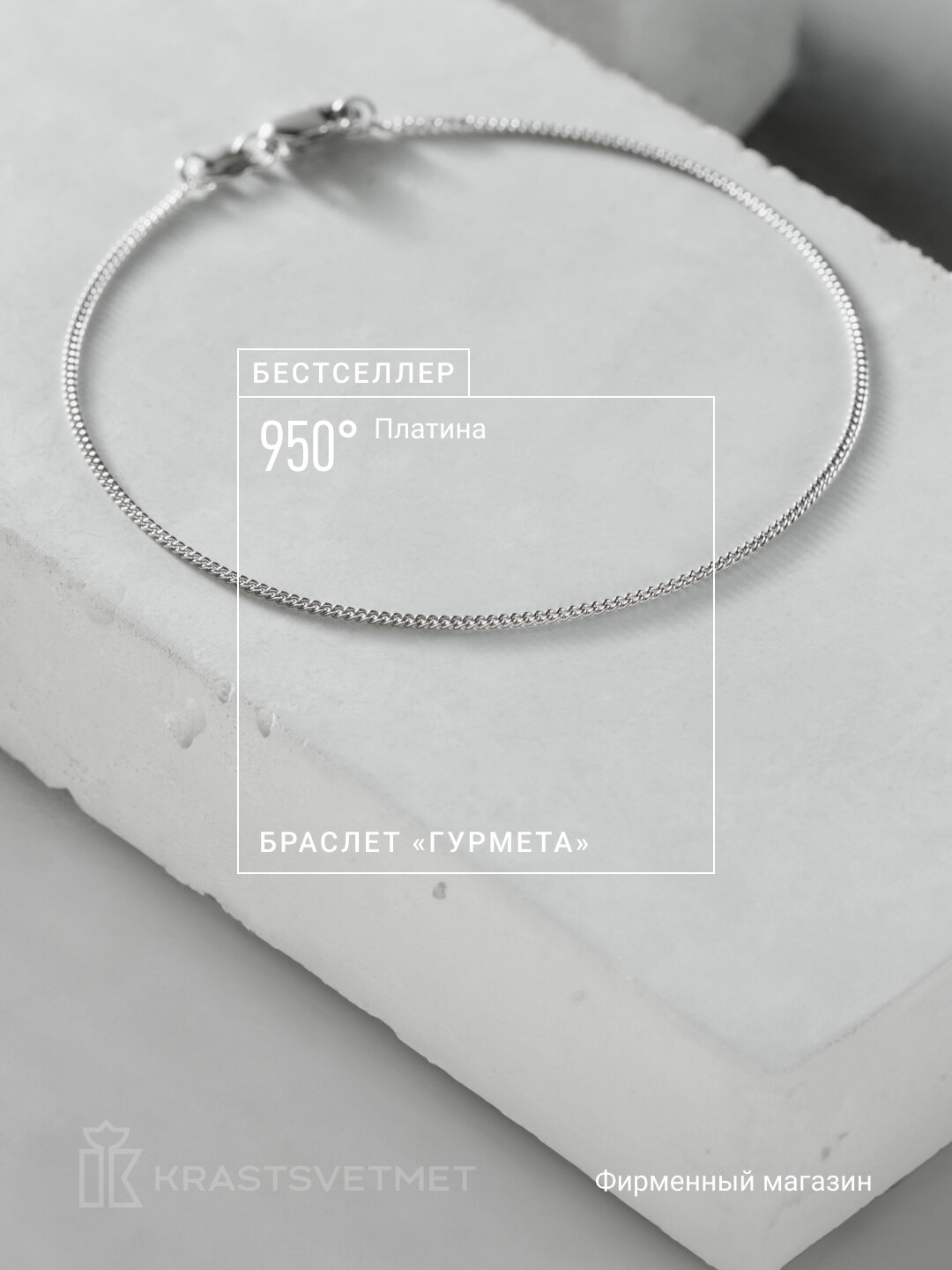 Ниже Вы можете прочитать отзывы на Браслет-цепочка Krastsvetmet, платина, 950 проба, длина 16 см., ознакомится с подробными характеристиками, посмотреть интересные обзоры и фотографии на Браслет-цепочка Krastsvetmet, платина, 950 проба, длина 16 см..