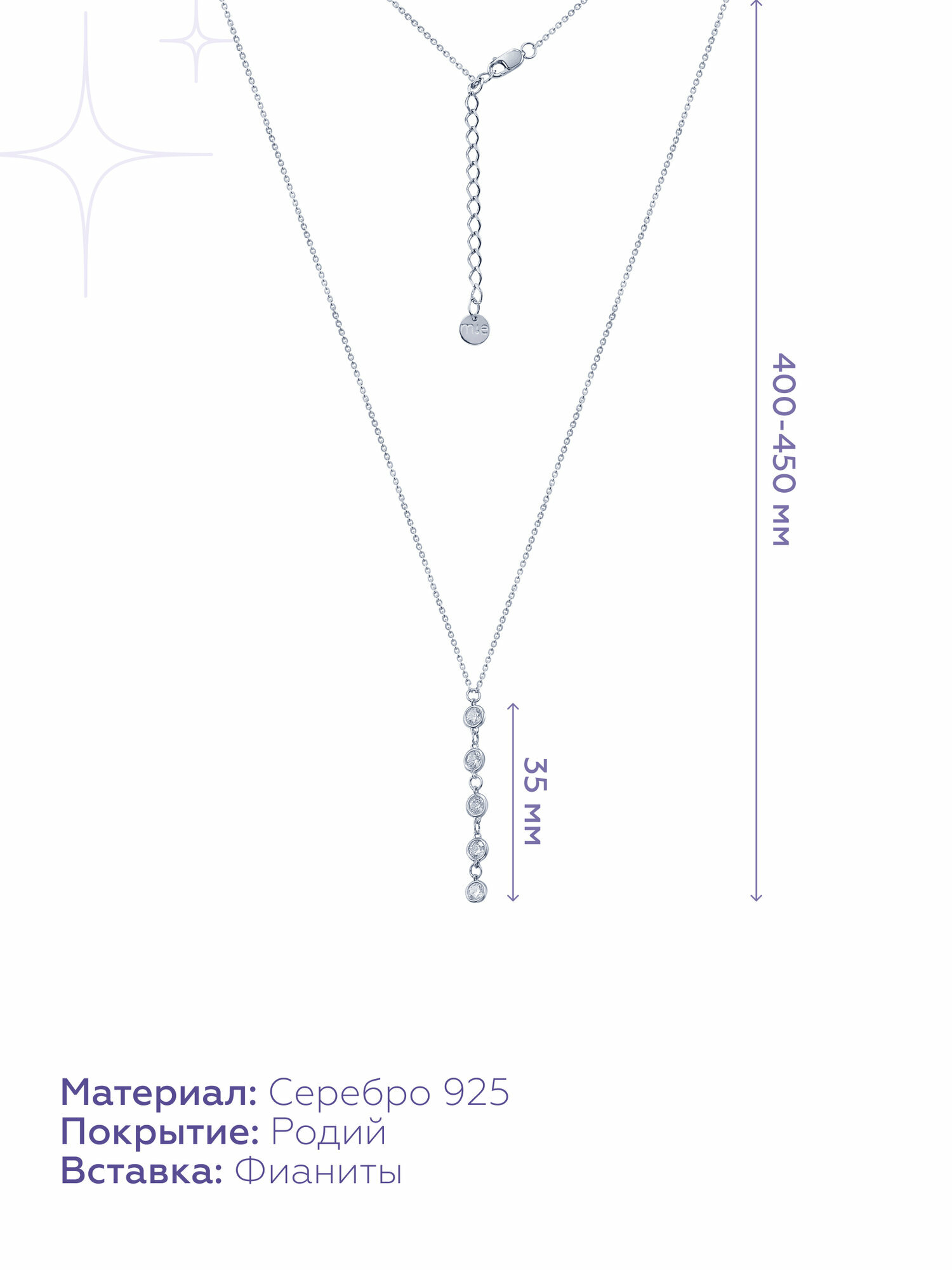 Колье MIESTILO на шею серебро 925 галстук с фианитами