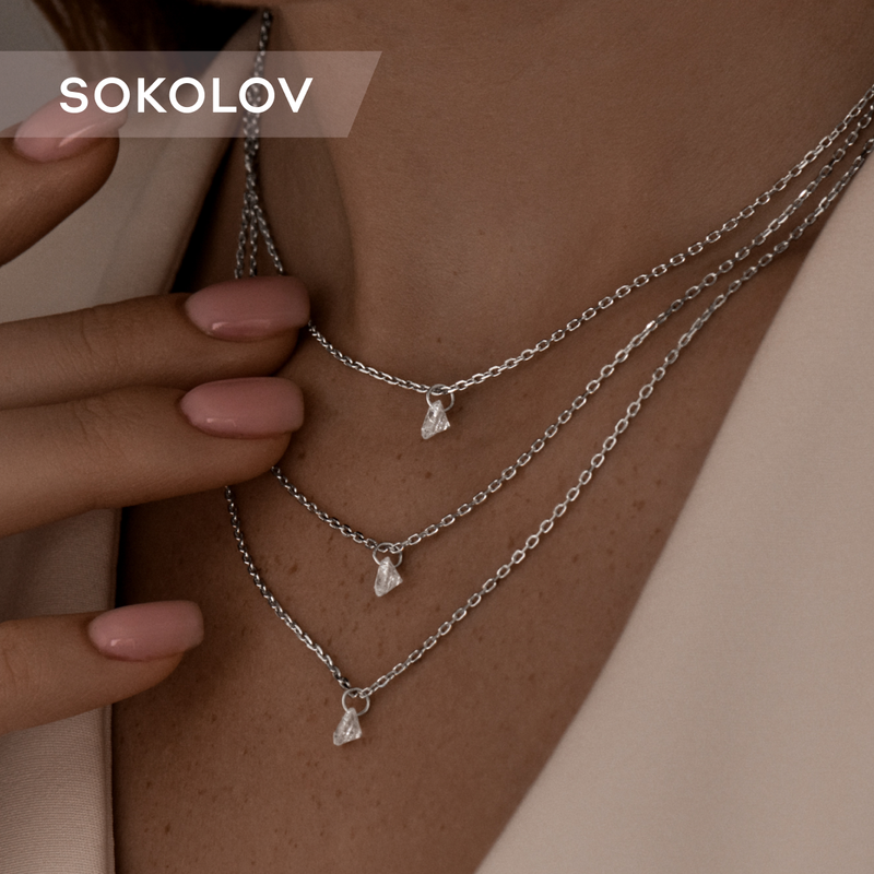 Купить Колье SOKOLOV, серебро, 925 проба, фианит, длина 55 см.
