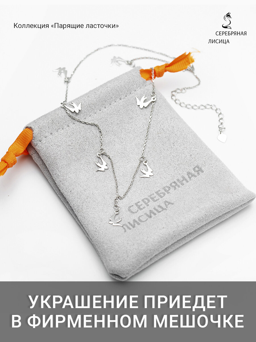 Серебряное колье с ласточками, серебряная цепочка 925 пробы, коллекция парящие ласточки