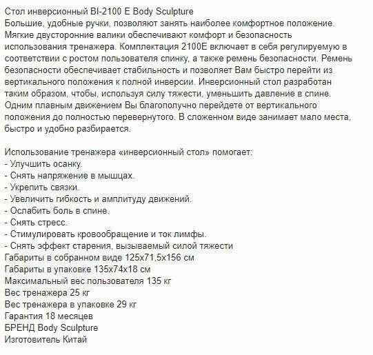 Инверсионный стол Body Sculpture BI-2100 E для вытяжки спины sportsman