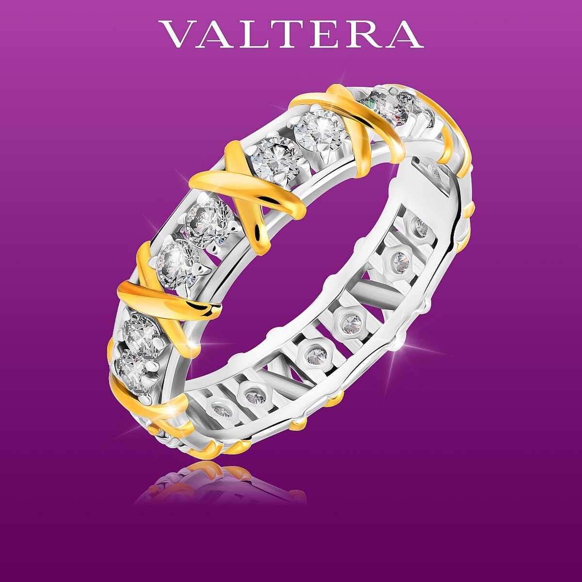Кольцо VALTERA дорожка / серебро 925 пробы / с фианитами по кругу / покрытие золото 585 пробы / 118066