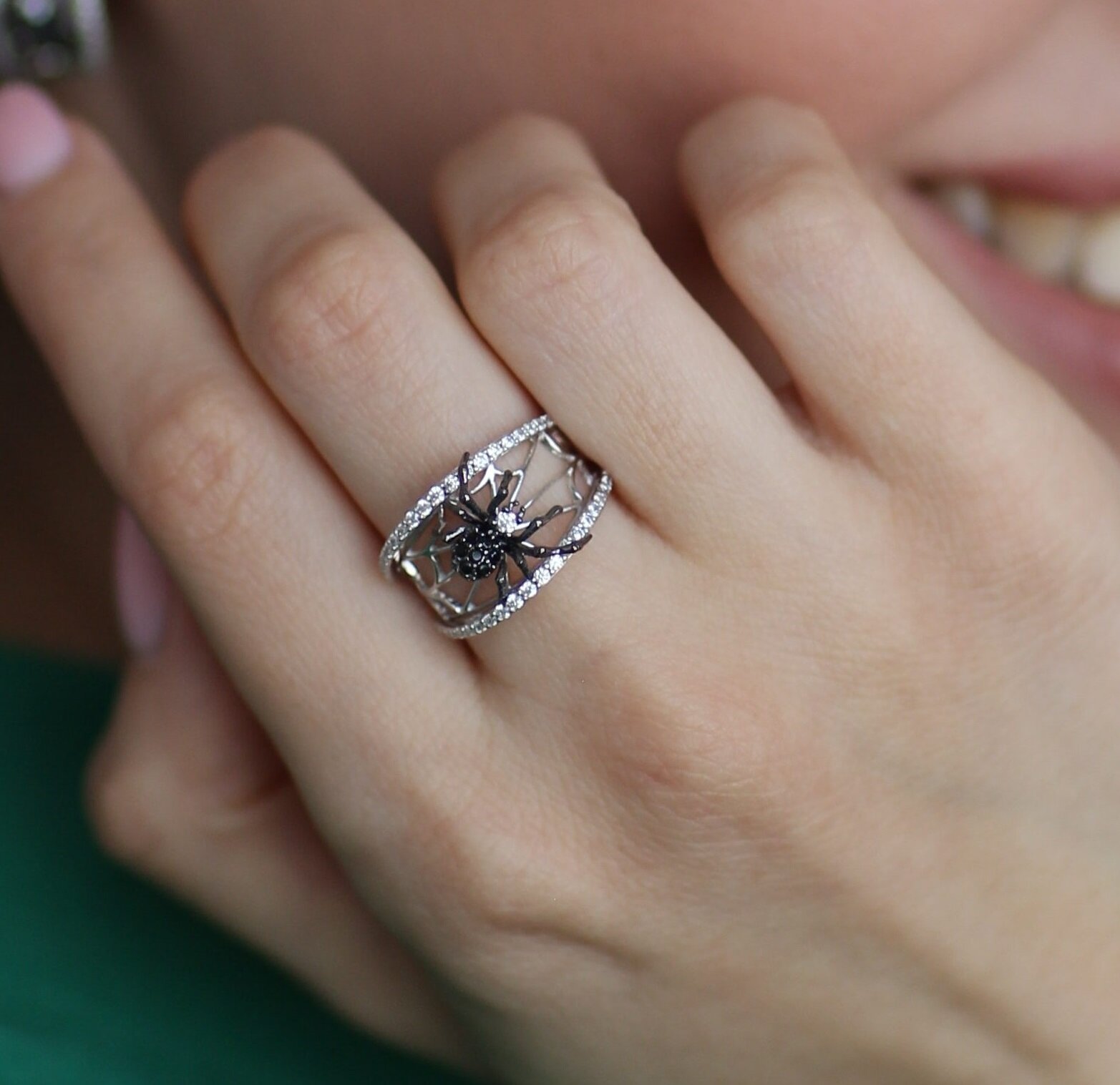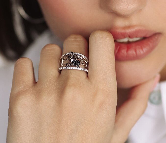 VALTERA Кольцо / паук / серебро 925 пробы / с кубическим цирконием и черной шпинелью синтетической / хороший подарок 117671