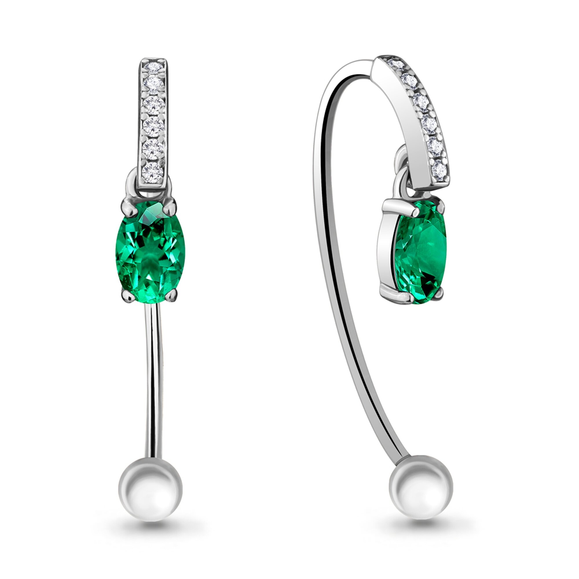 Серебряные серьги Diamant online А48296АГ с фианитом и гидротермальным изумрудом, Серебро 925°