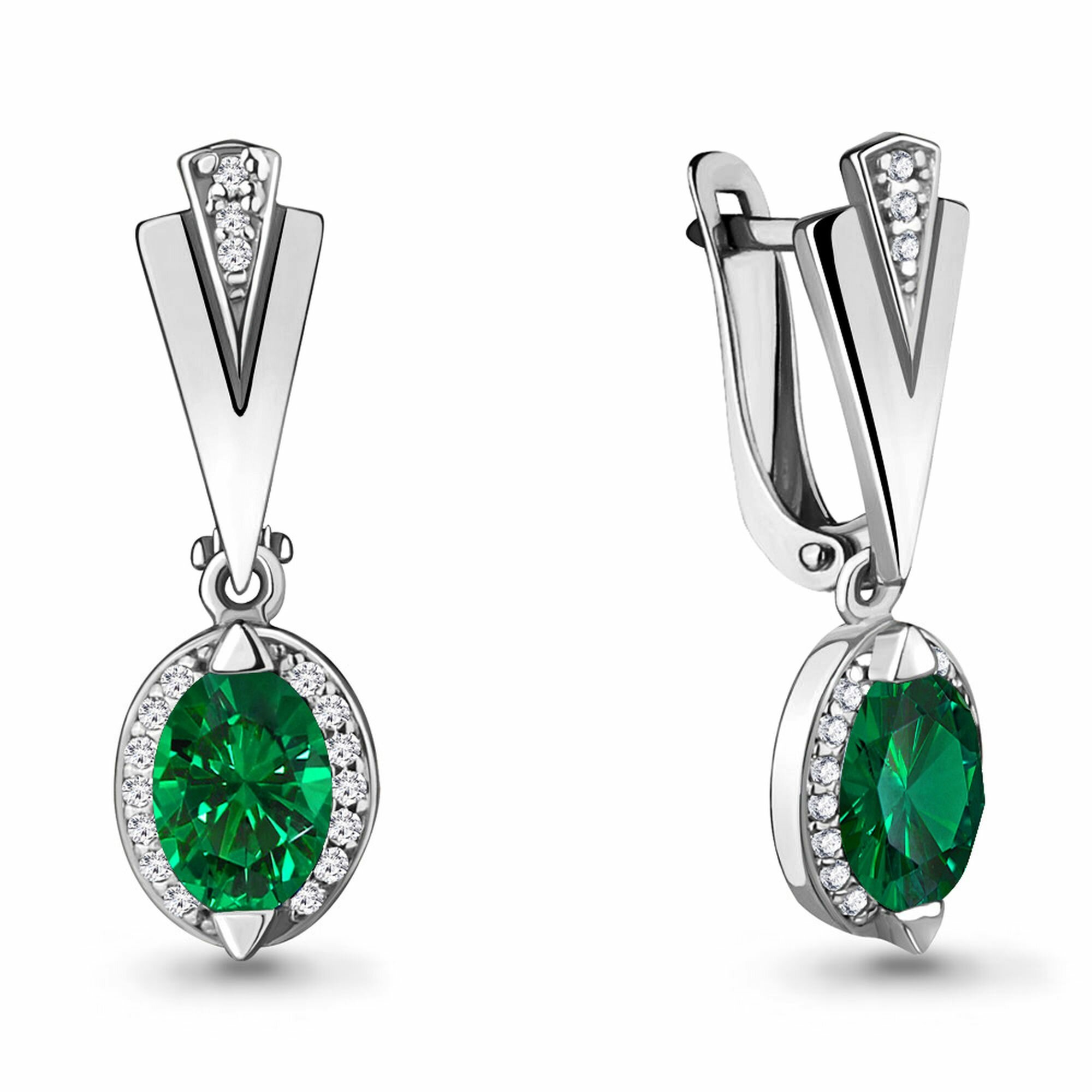 Серебряные серьги Diamant online А43879Г с фианитом и гидротермальным изумрудом, Серебро 925°