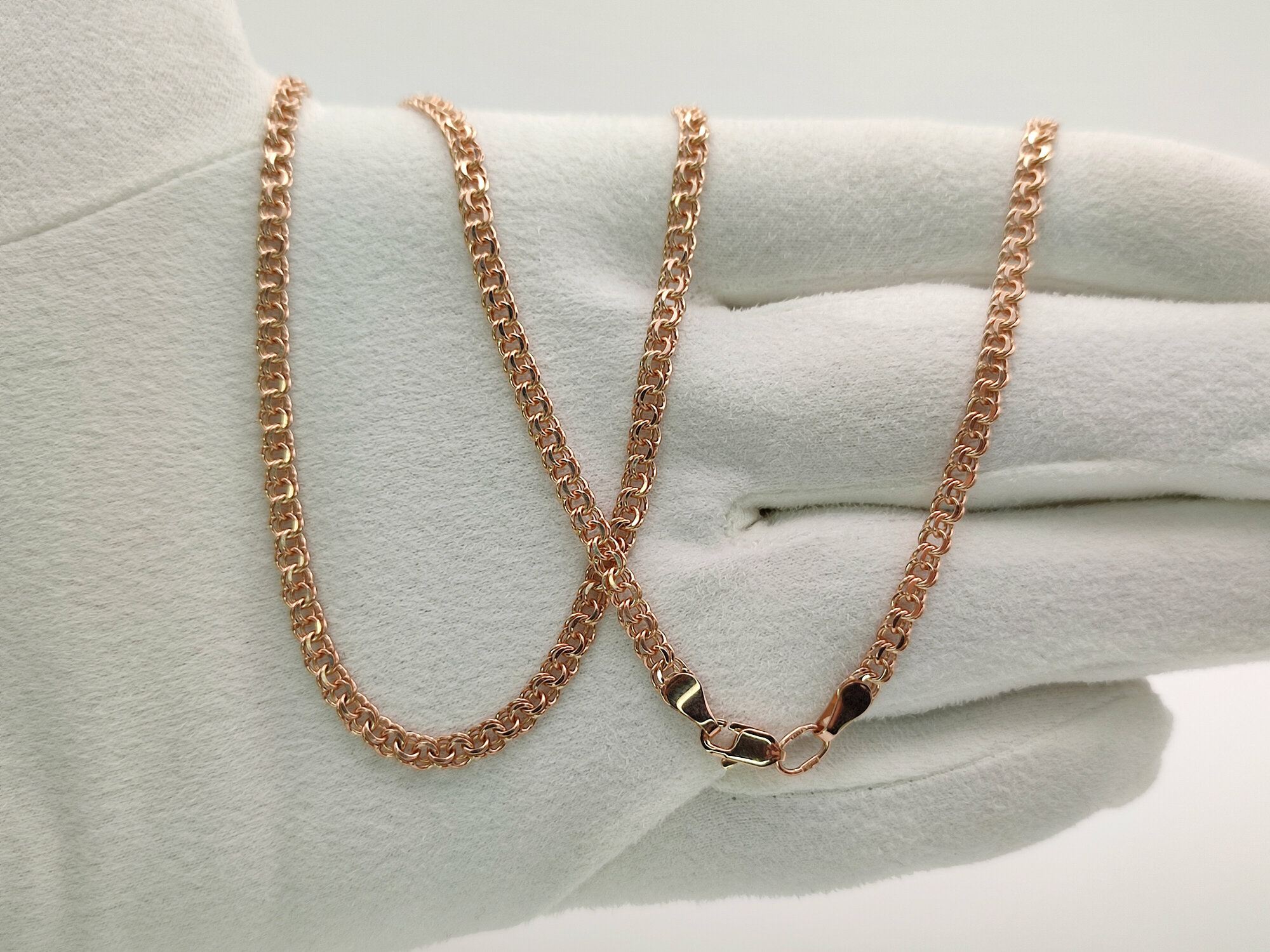 Цепь бисмарк золотая, 585 проба, красное золото, размер 50 см.