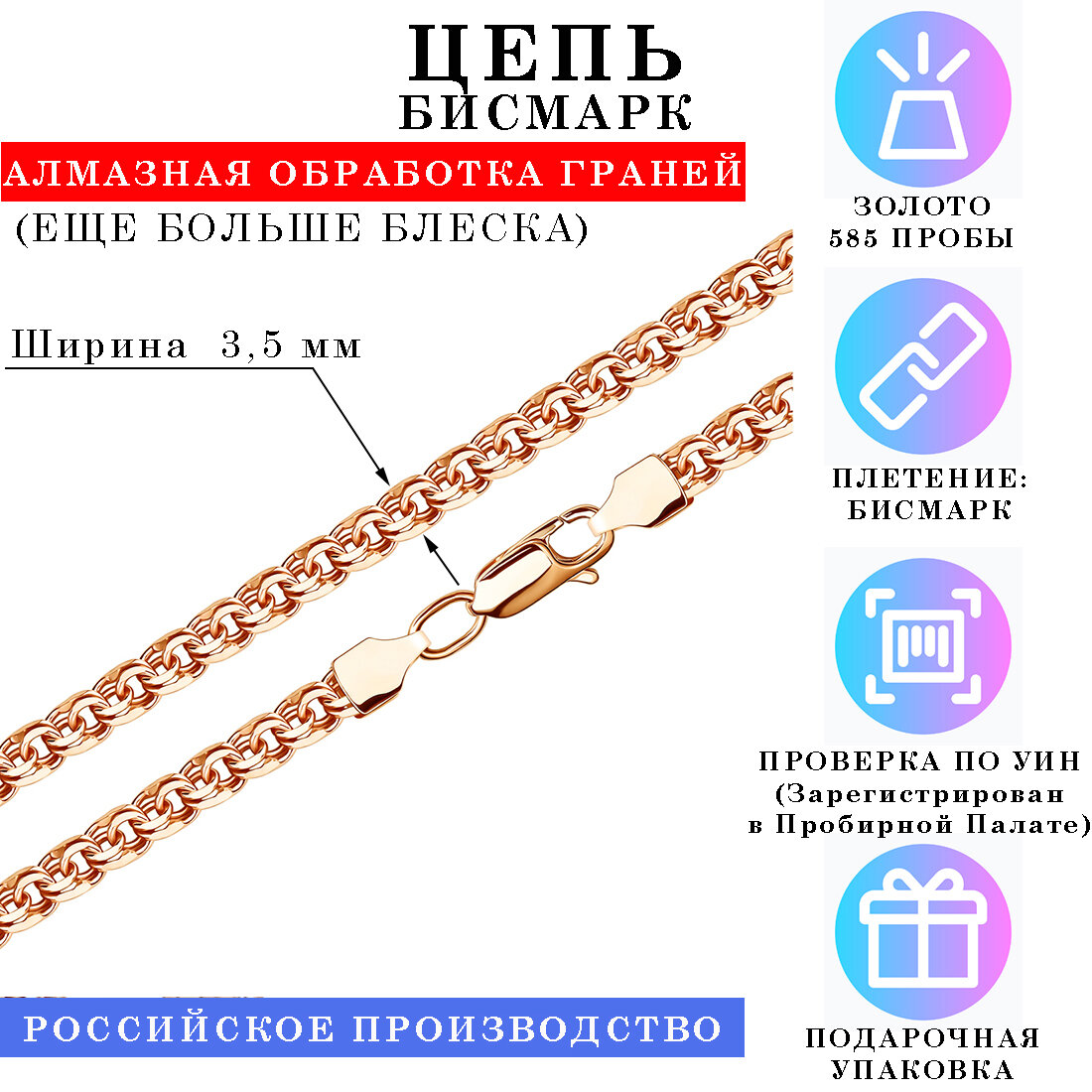 | Комплектация | Цепь из Золота 585 пробы, Бирка, Пломба, Подарочная упаковка |