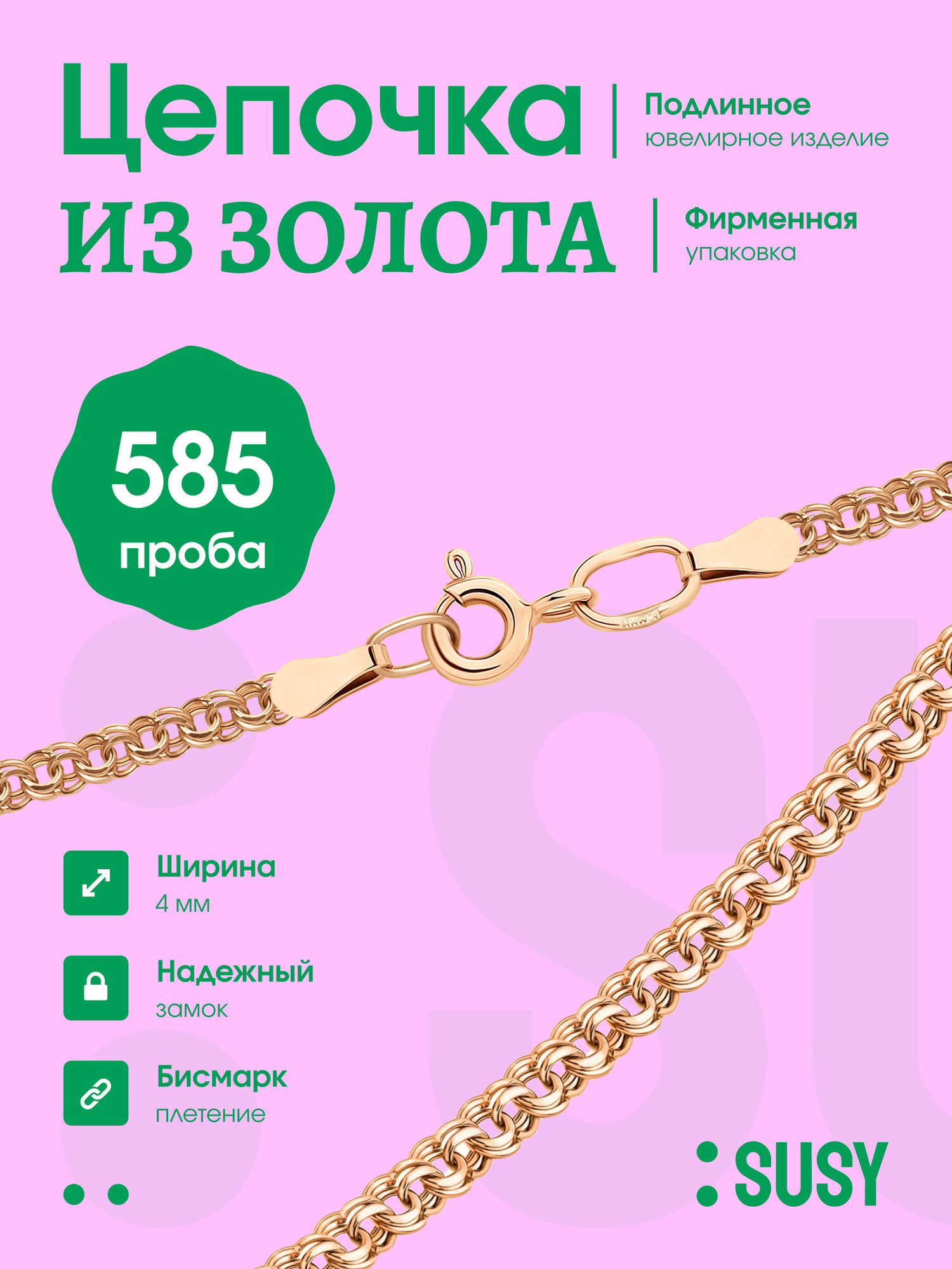 Купить Цепь Susy, красное золото, 585 проба, длина 50 см, средний вес 5.48 г, , красный