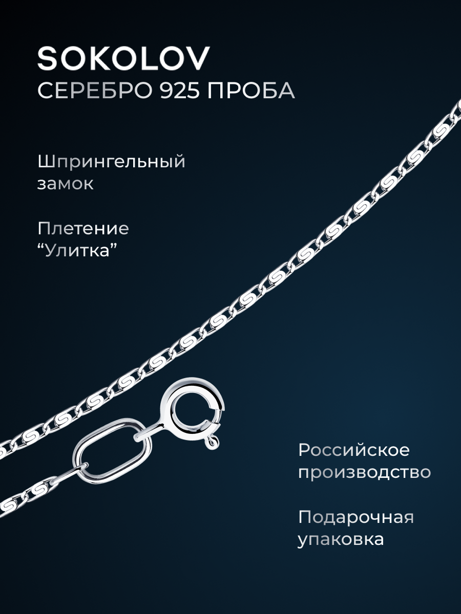 Цепь SOKOLOV из серебра, плетение Улитка, 925 проба 968110302, размер 55 см
