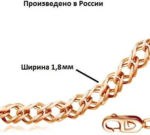 Полновесная цепь/цепочка из красного золота 585 Бронницкий завод плетения Двойной ромб 45 размер