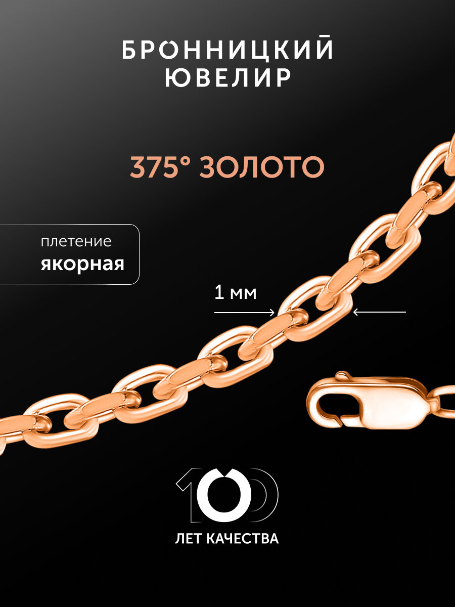 Цепь Бронницкий Ювелир, золото, 375 проба, длина 45 см, средний вес 1.4 г, , золотистый