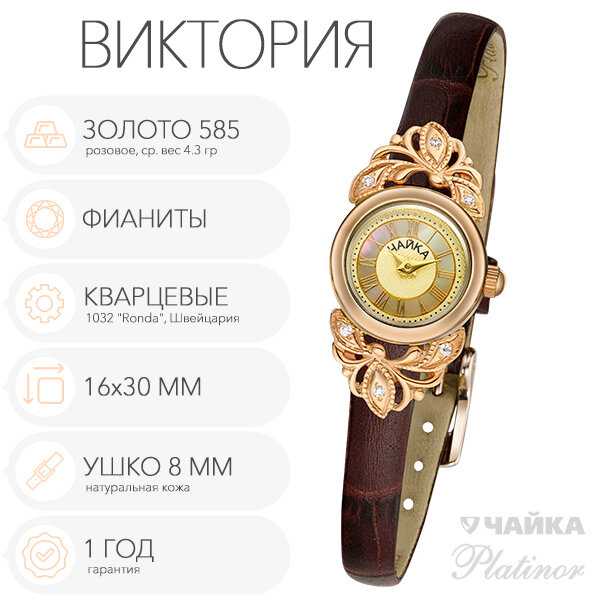 Женские золотые часы Чайка Виктория с фианитами, арт. 97030-456.449